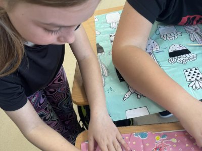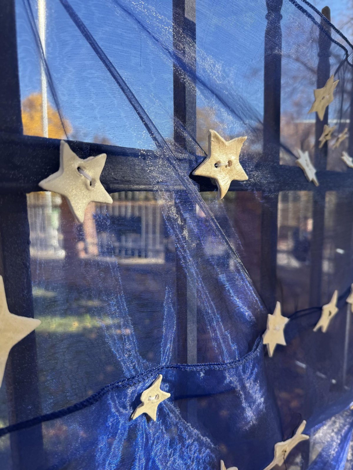 Na závěr, jsme je pak přišli na látku a tím nám vzniklo nádherné nebe plné hvězd, které společně tvoří nejedno souhvězdí.