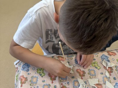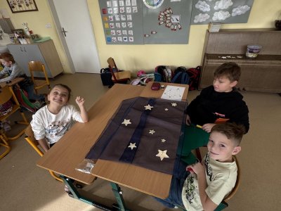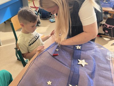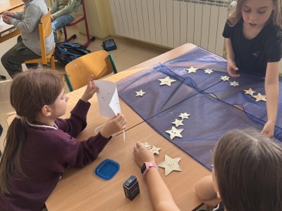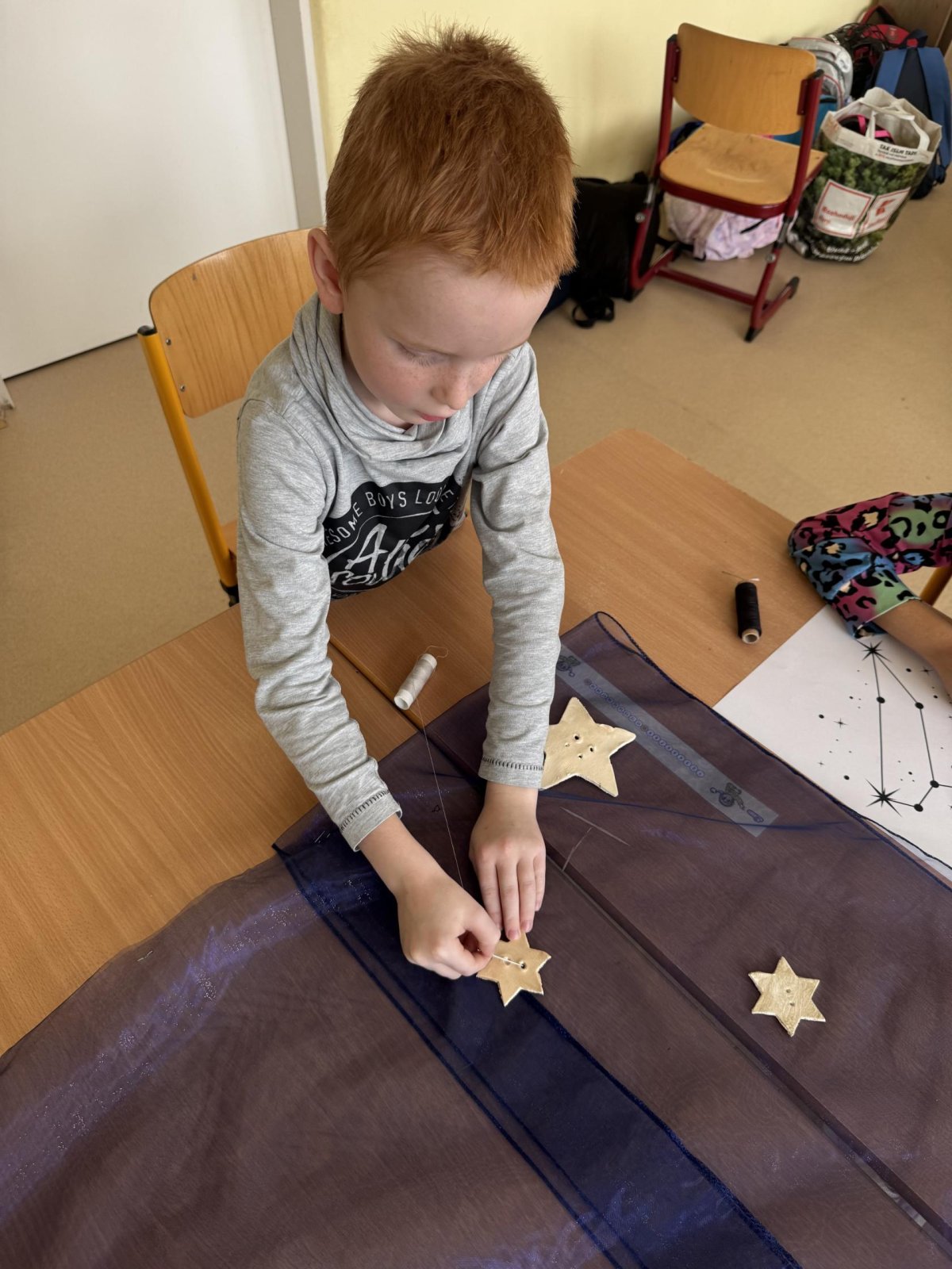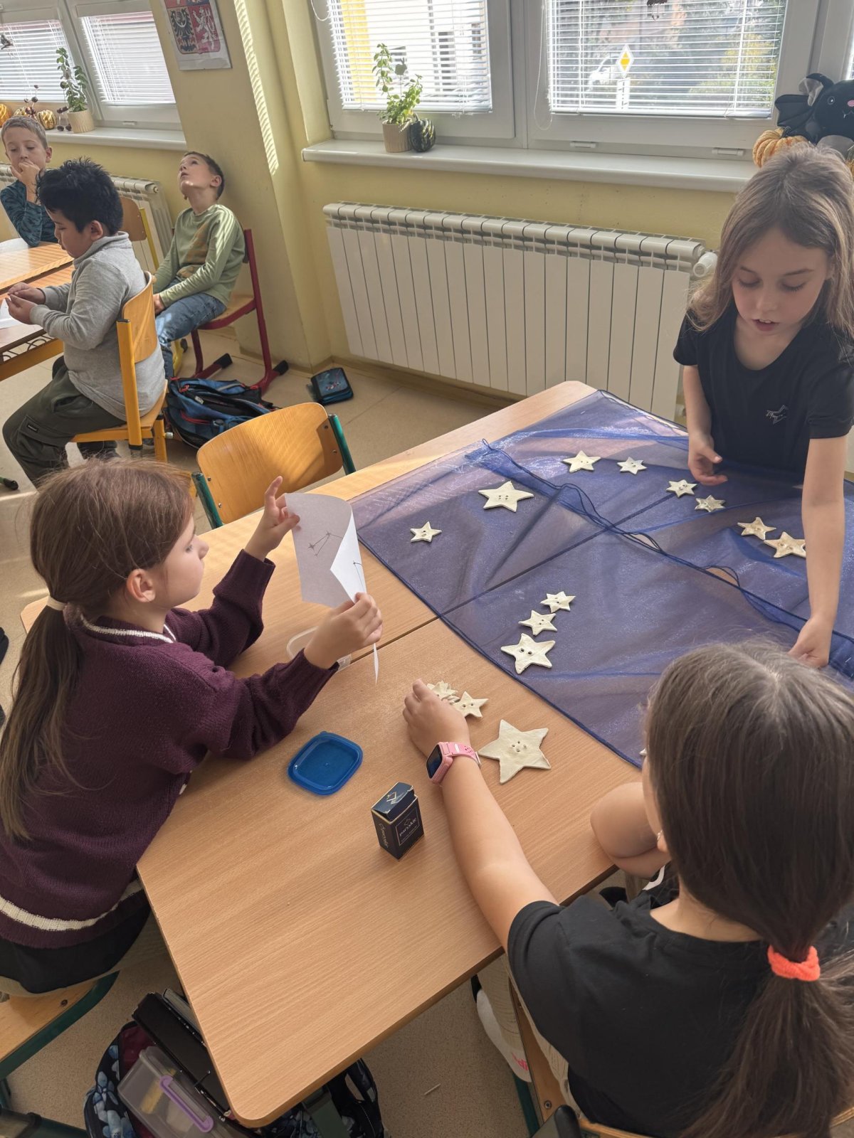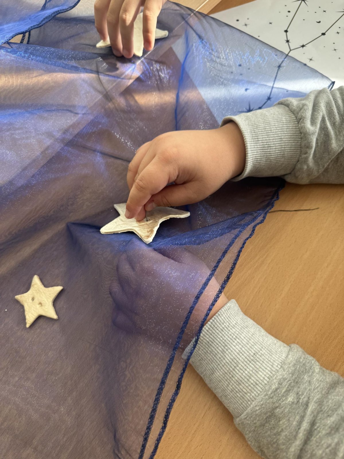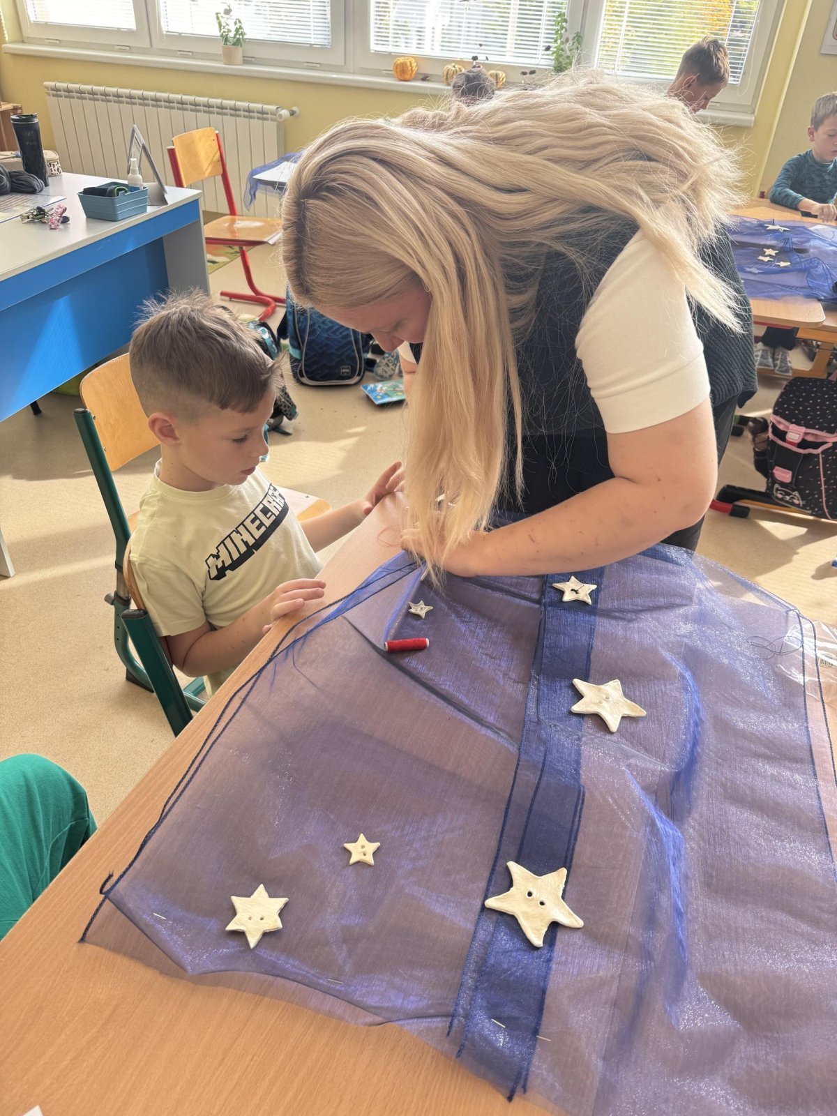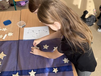 V pracovních činnostech a výtvarné výchově jsme se tentokrát nechali unášet kouzlem souhvězdí. Díky tomu jsme si tak mohli vyzkoušet spoustu výtvarných technik a pracovních postupů.
