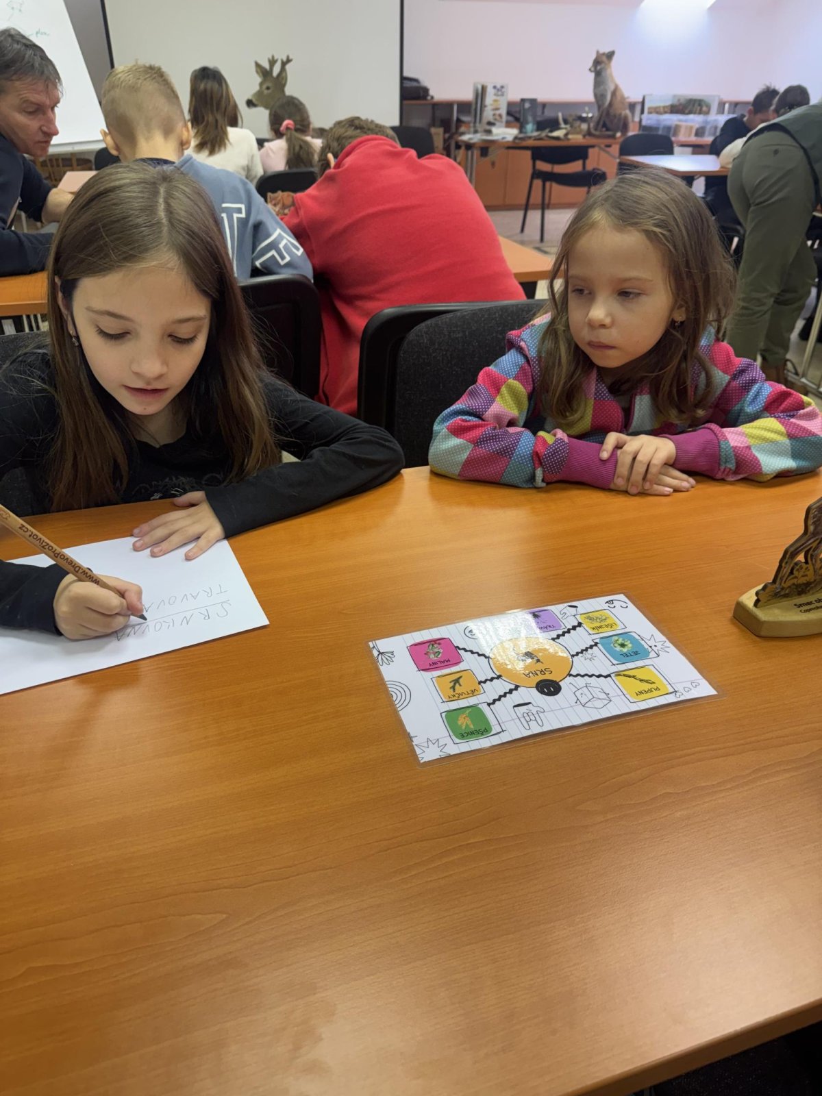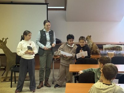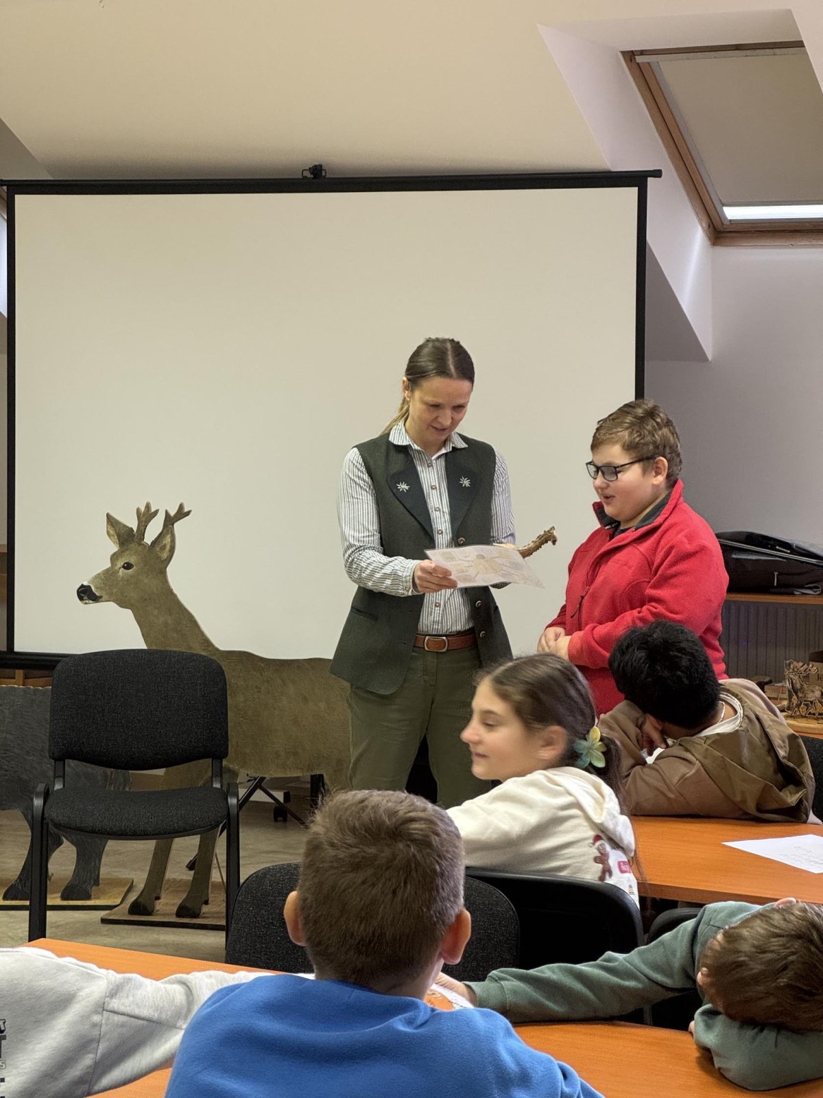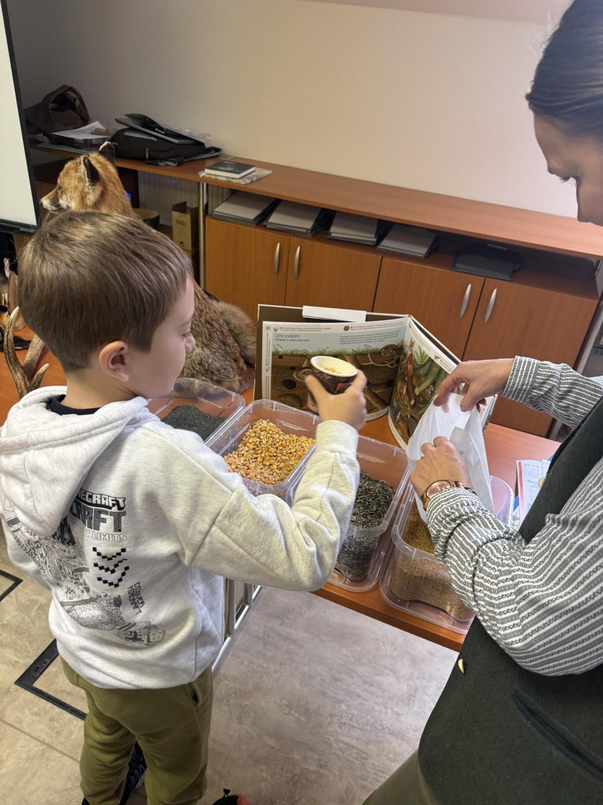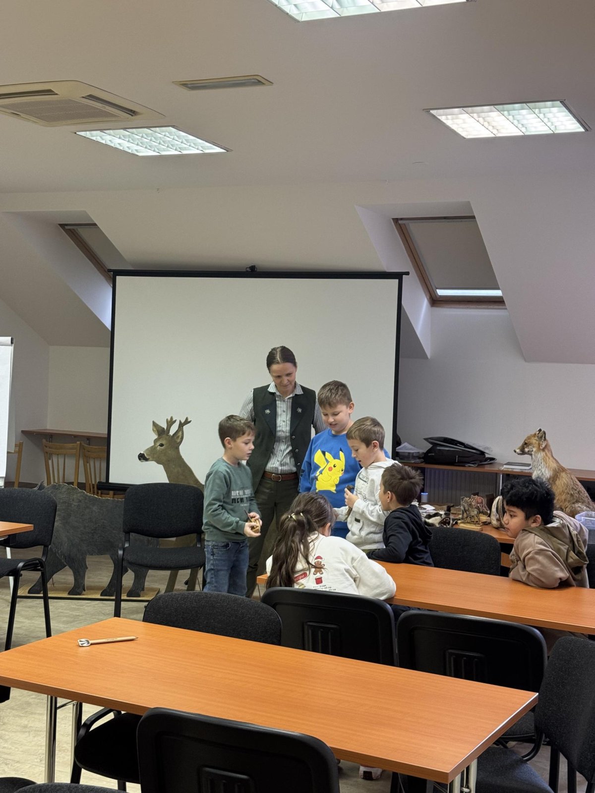 Tady už na nás čekala paní lesnice, která nám povyprávěl o zvířátkách, a hlavně o tom, co taková lesní zvířátka jedí.