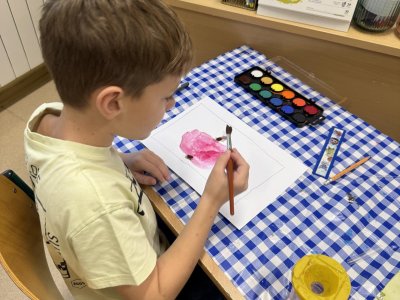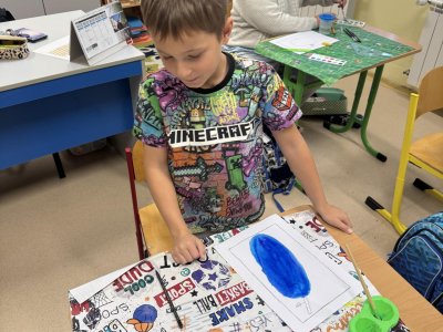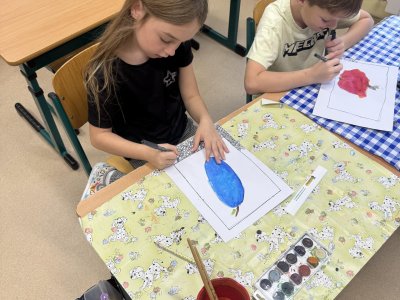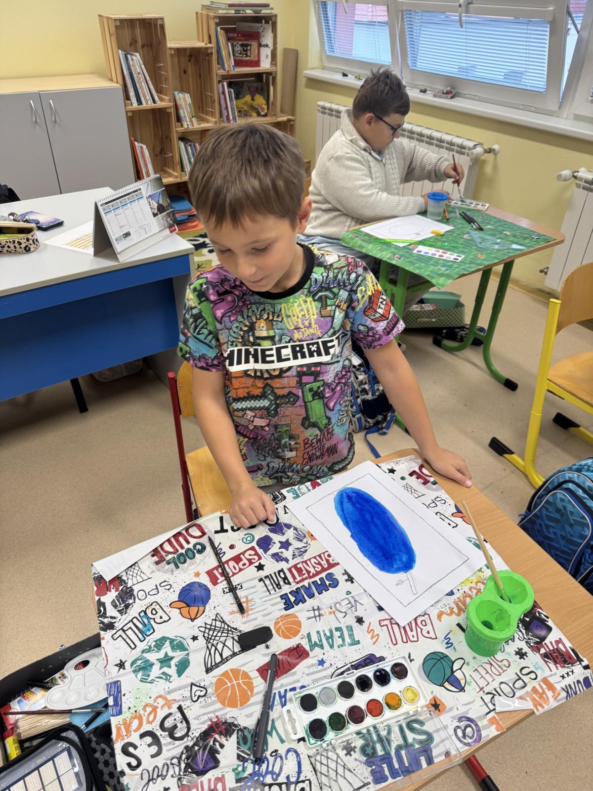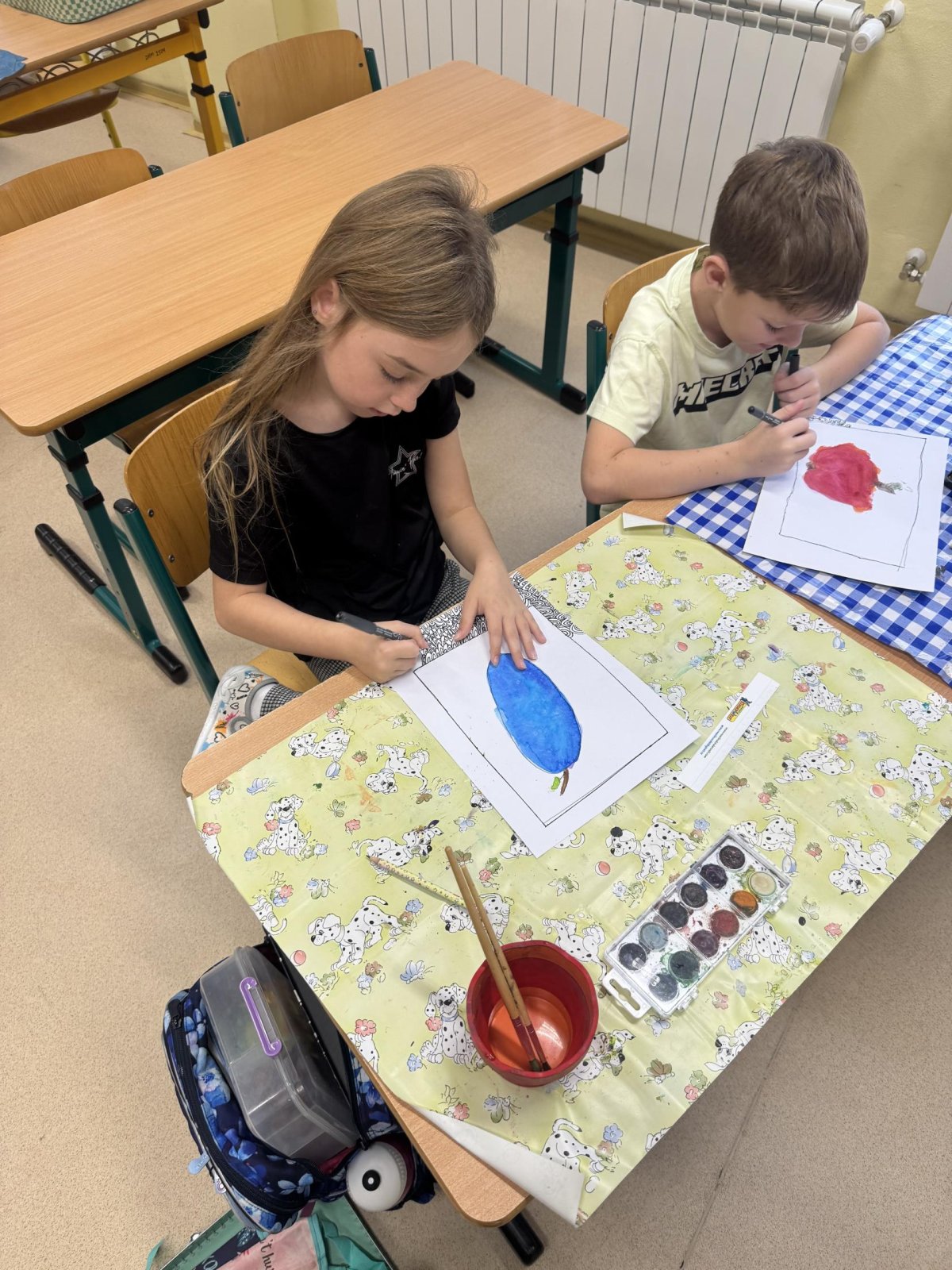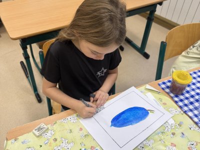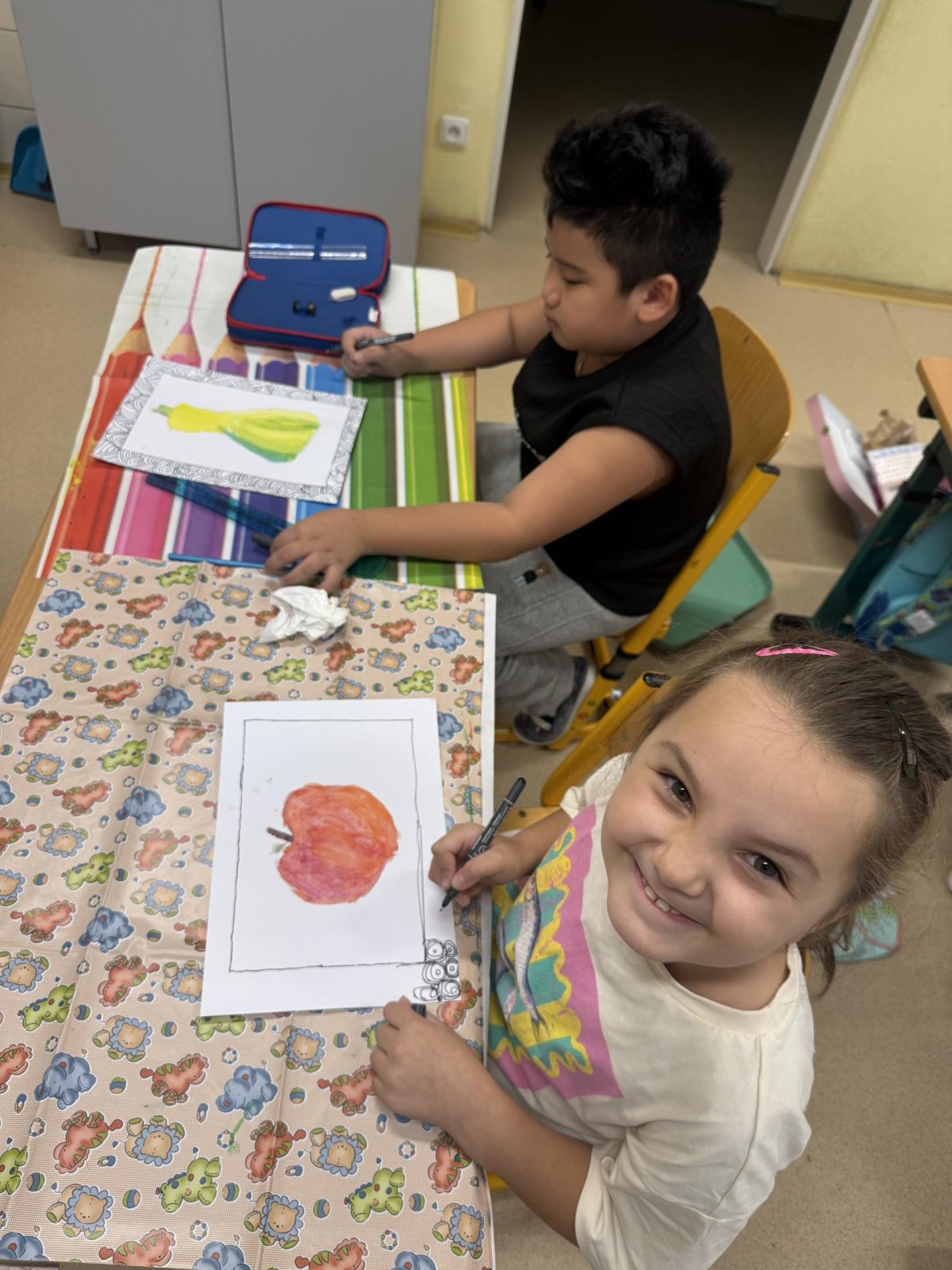 V hodině výtvarné výchovy jsme se tentokrát nechli inspirovat podzimním ovocem. Jablíčka, hrušky, švesty se staly hlavními hvězdami našeho tvoření.