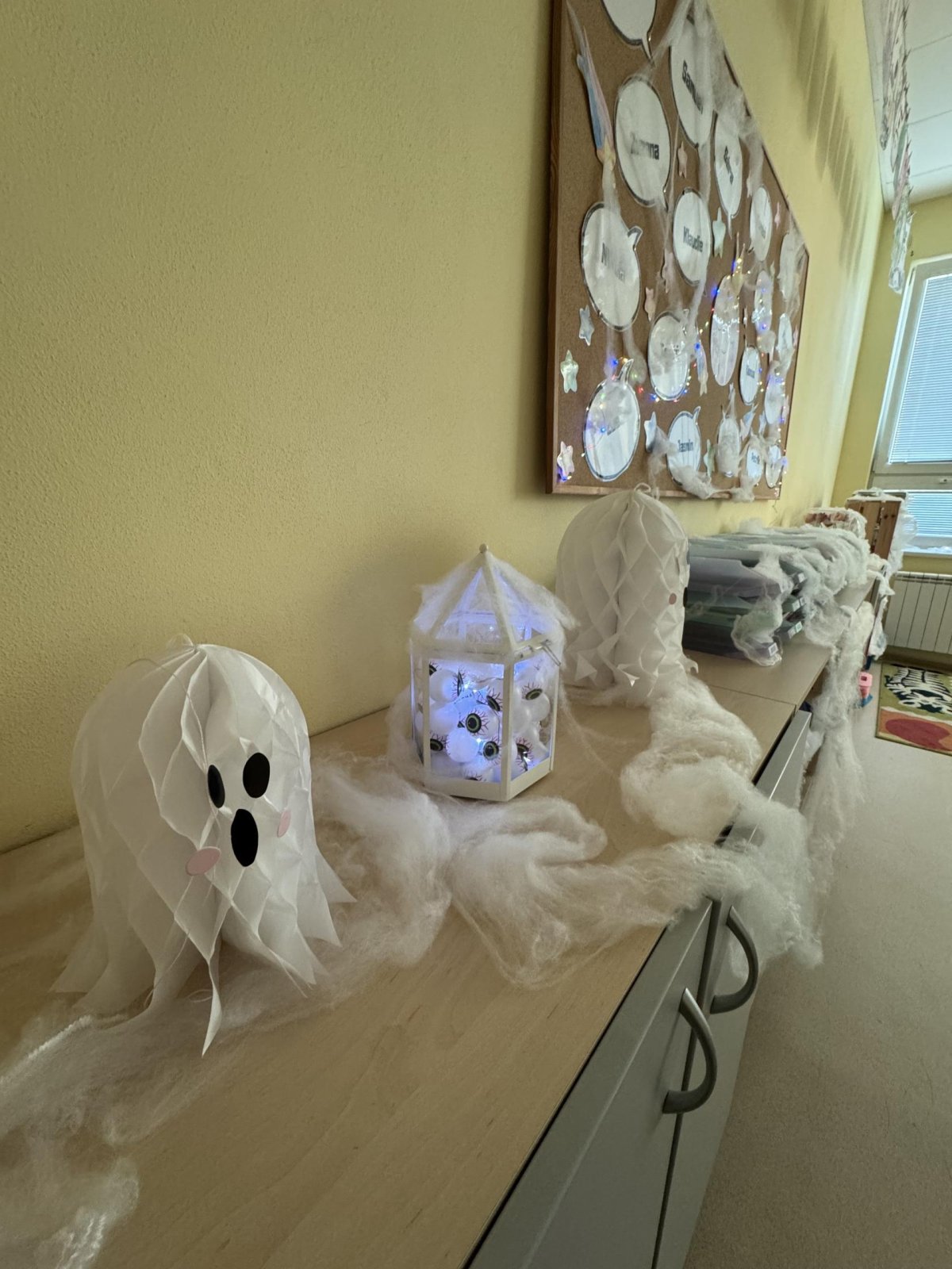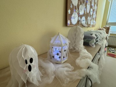 Naše třída se zahalila do pavučin a světýlek a mohla tak všechny tyto bytosti náležitě přivítat.