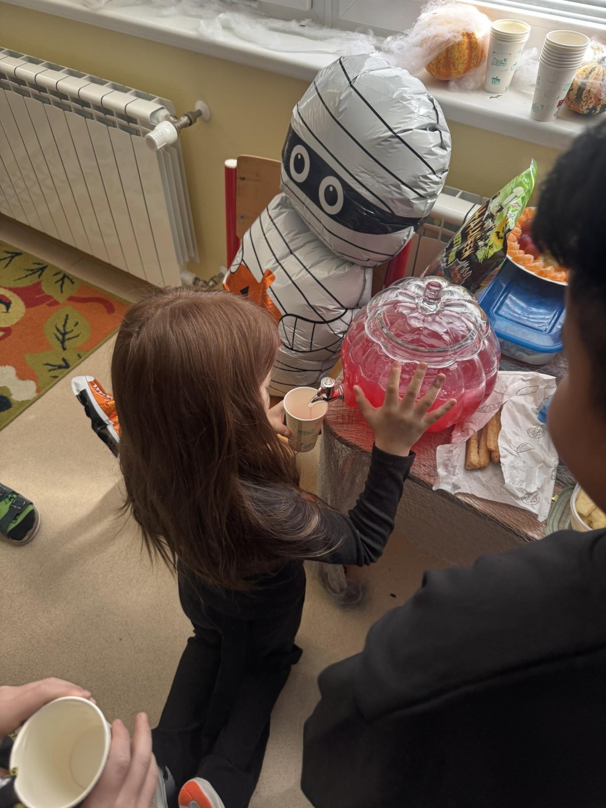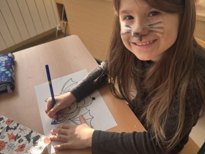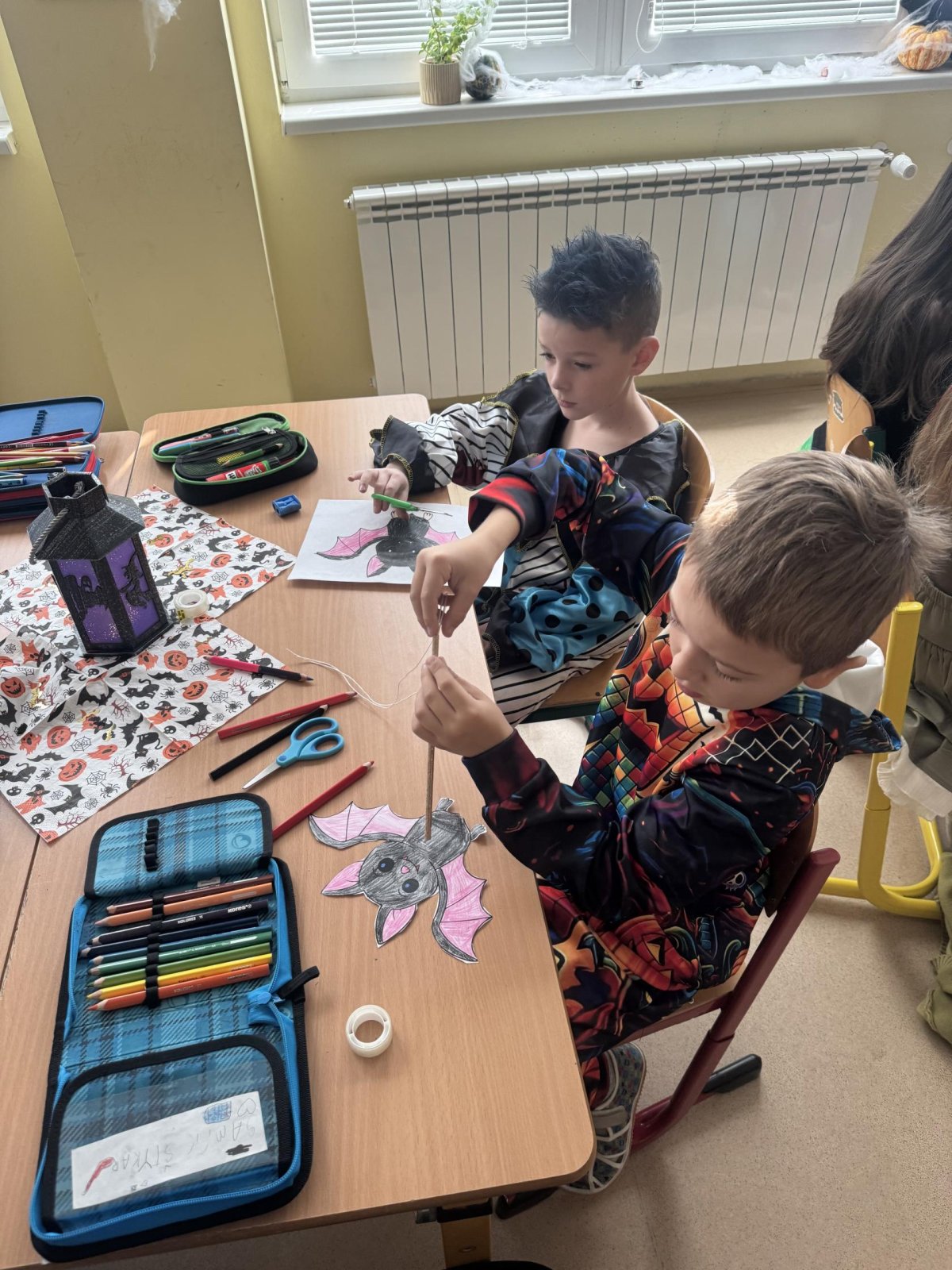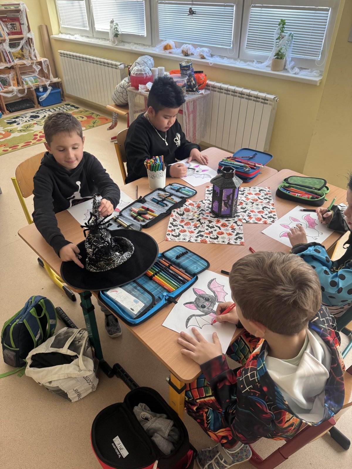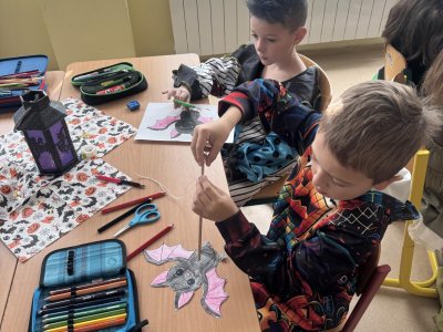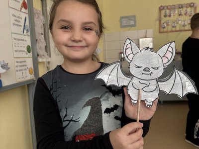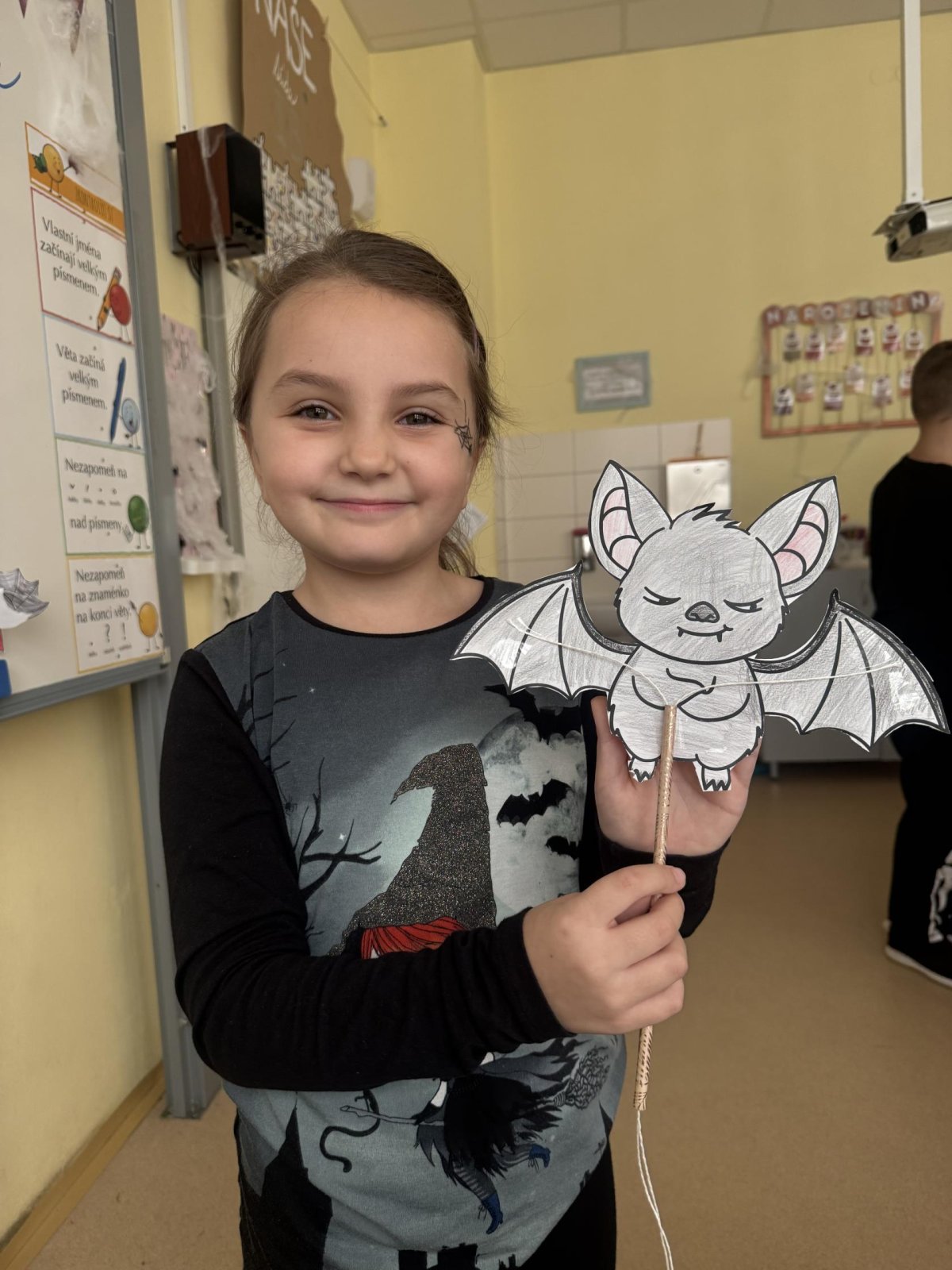 Nejprve jsme si vyrobili létajícího netopýra, pak jsme si dali všelijaké dobrůtky, které jsme si donesli. Dále pak na nás čekal dýňová stezka, která potrápila naše hlavičky. Potom jsme si zaskočili do fotokoutku udělat si památku na tento den. Na závěr na nás čekal jeden ze strašidelných dílů Městečka záhad.