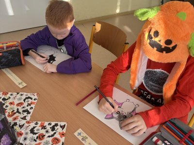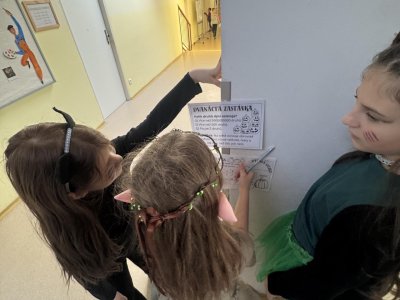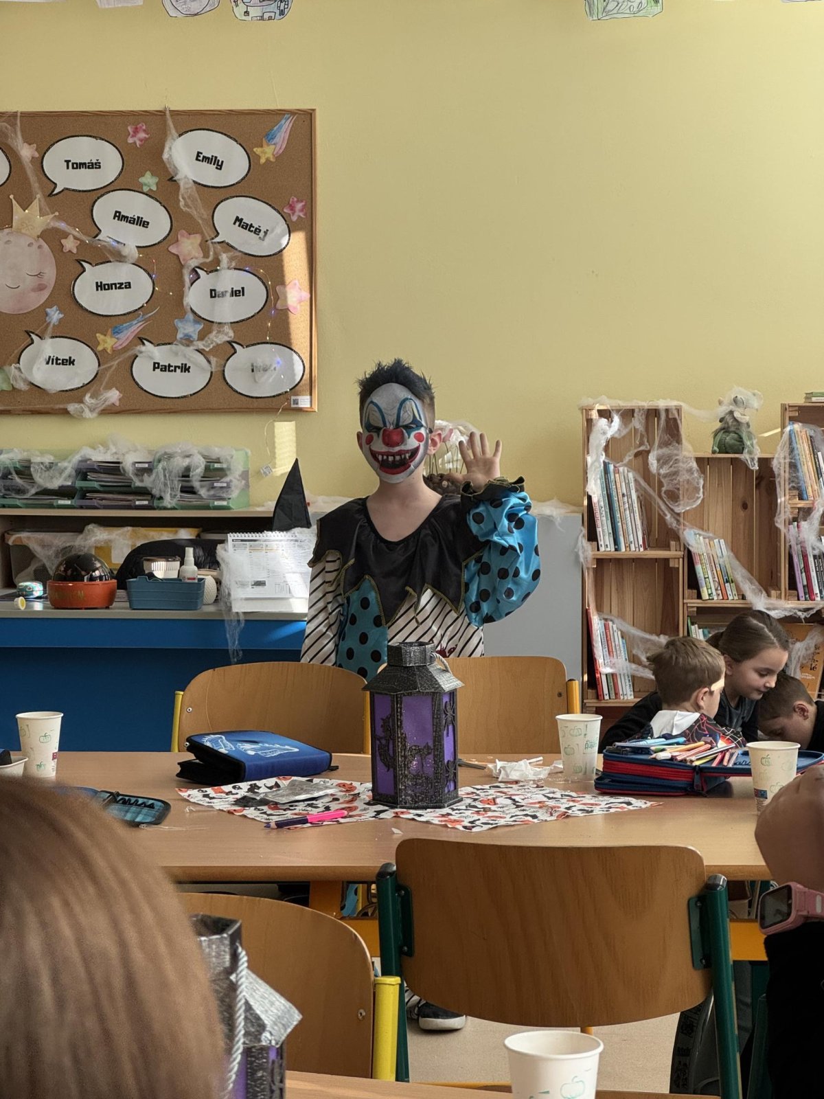 Dnes se školou nesla strašidelná atmosféra. Čarodějové, čarodějky, elfové, klauni, ale i černé kočky nás poctili svou návštěvou.