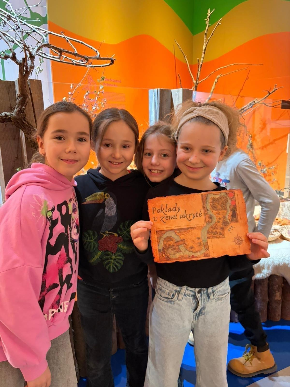 Zkusili jsme si práci archeologa a hle, objevili jsme předměty z doby plastové. Dozvěděli jsme se co je to depot. Se slepou mapou v ruce jsme se vydali do výstavní místnosti. Wau!!! Pořádně prohlédnout všechny vystavené exponáty a honem najít místo označené na slepé mapě. Na pískovišti jsme si vyzkoušeli, jak se vytvářely meandry řeky Dyje a na závěr si z keramické hlíny vyrobili knoflík.