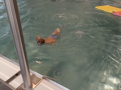 Uplaveme 200 m, skáčeme do vody a potápíme se.