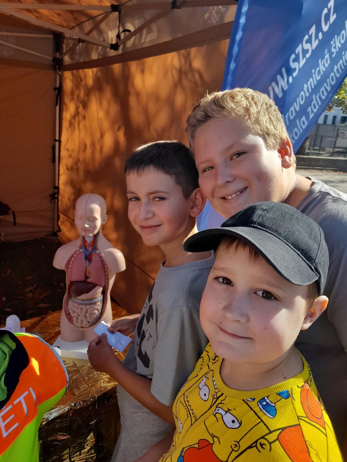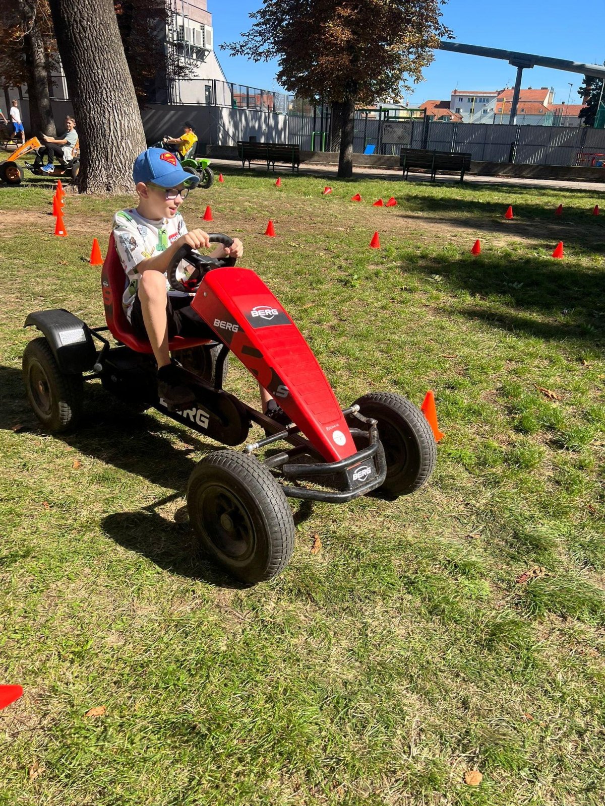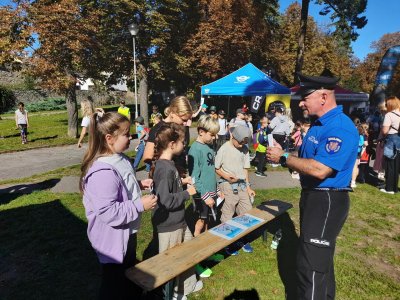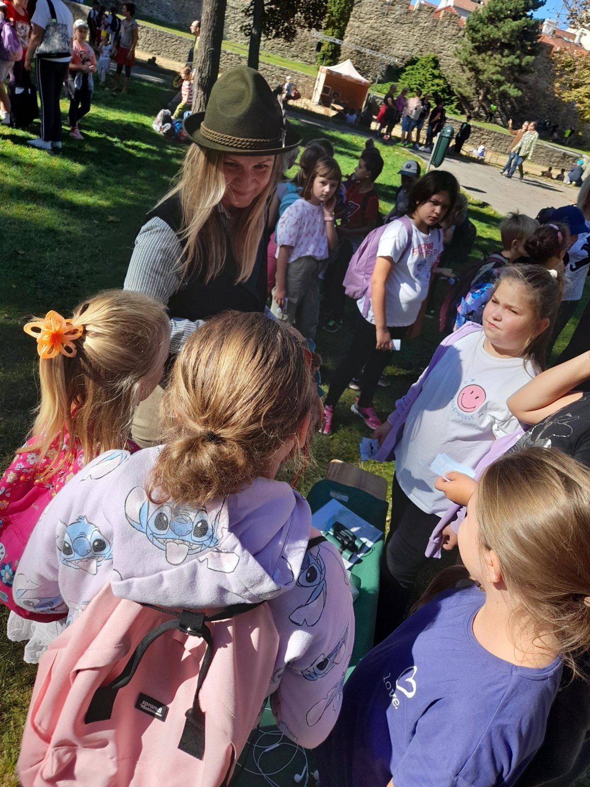 Další veselé dopoledne, mimo budovu školy a za krásného počasí jsme prožili v pátek 19. 9. 2025. V Horním parku připravili zástupci Městské policie, zdravotníků, Městských lesů a dalších poskytovatelů různých služeb pro děti zábavné a naučné aktivity, které si žáci mohli vyzkoušet sami na sobě, měli možnost ověřit si svoje vědomosti a dovednosti a užít si společně mnoho zábavy i legrace. Při zpáteční cestě do školy jsme si ještě nafotili několik hezkých památek v parku před školou.