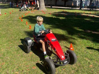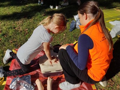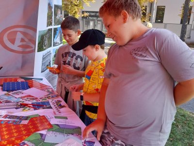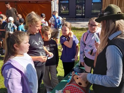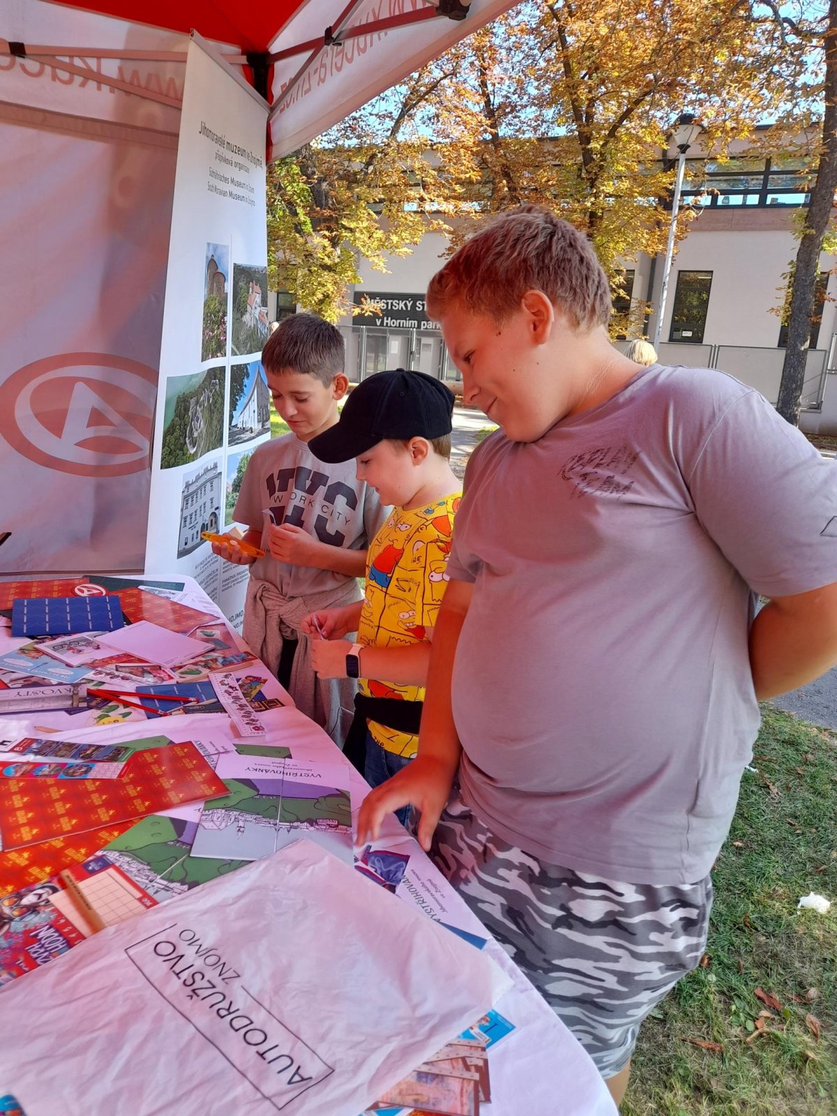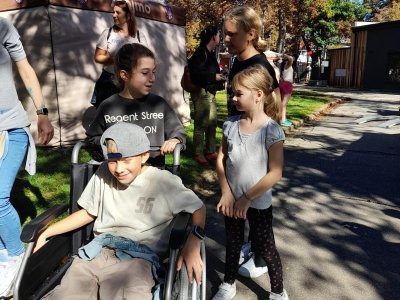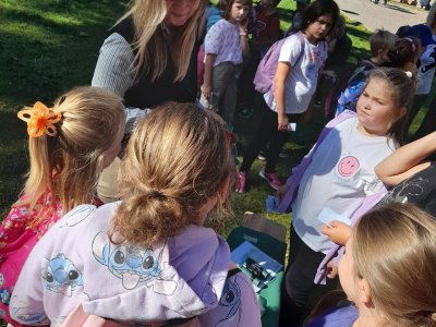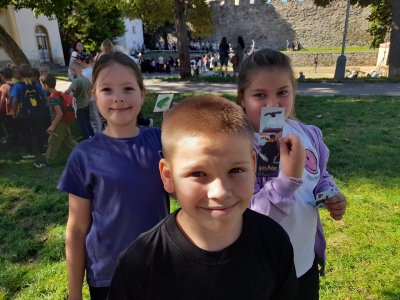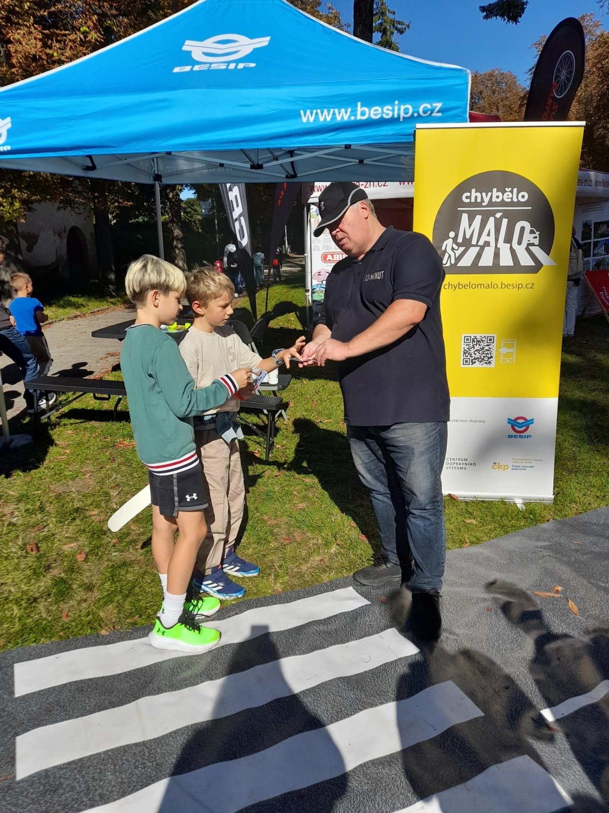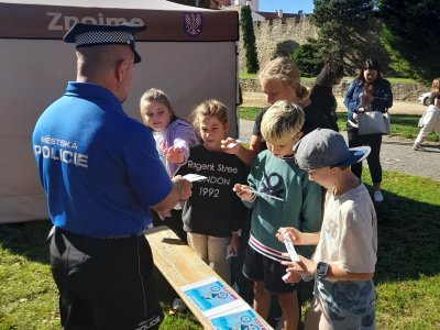 Další veselé dopoledne, mimo budovu školy a za krásného počasí jsme prožili v pátek 19. 9. 2025. V Horním parku připravili zástupci Městské policie, zdravotníků, Městských lesů a dalších poskytovatelů různých služeb pro děti zábavné a naučné aktivity, které si žáci mohli vyzkoušet sami na sobě, měli možnost ověřit si svoje vědomosti a dovednosti a užít si společně mnoho zábavy i legrace. Při zpáteční cestě do školy jsme si ještě nafotili několik hezkých památek v parku před školou.