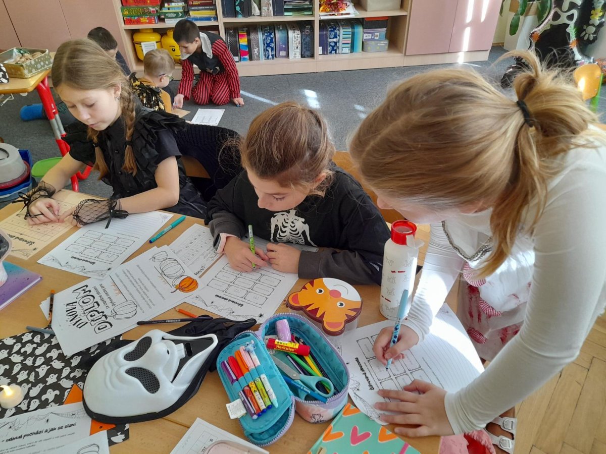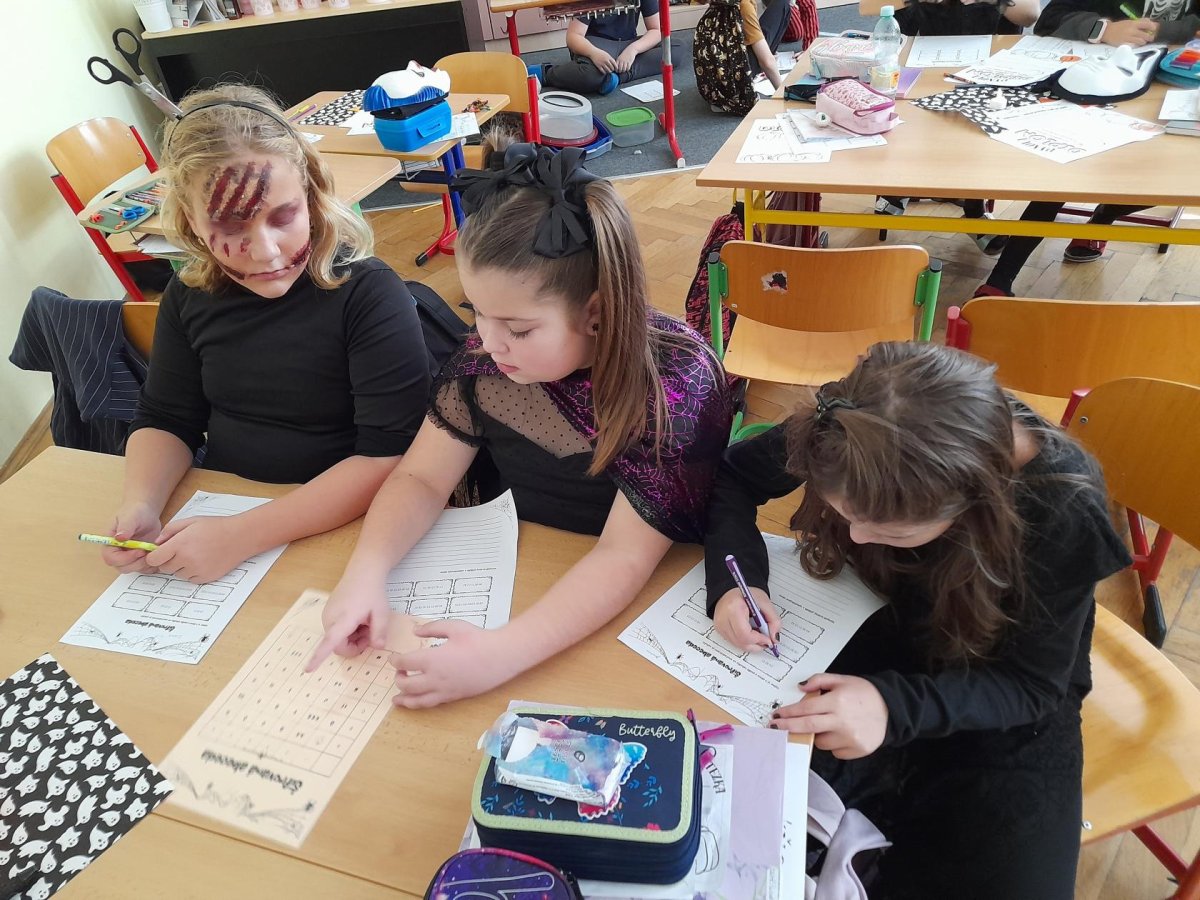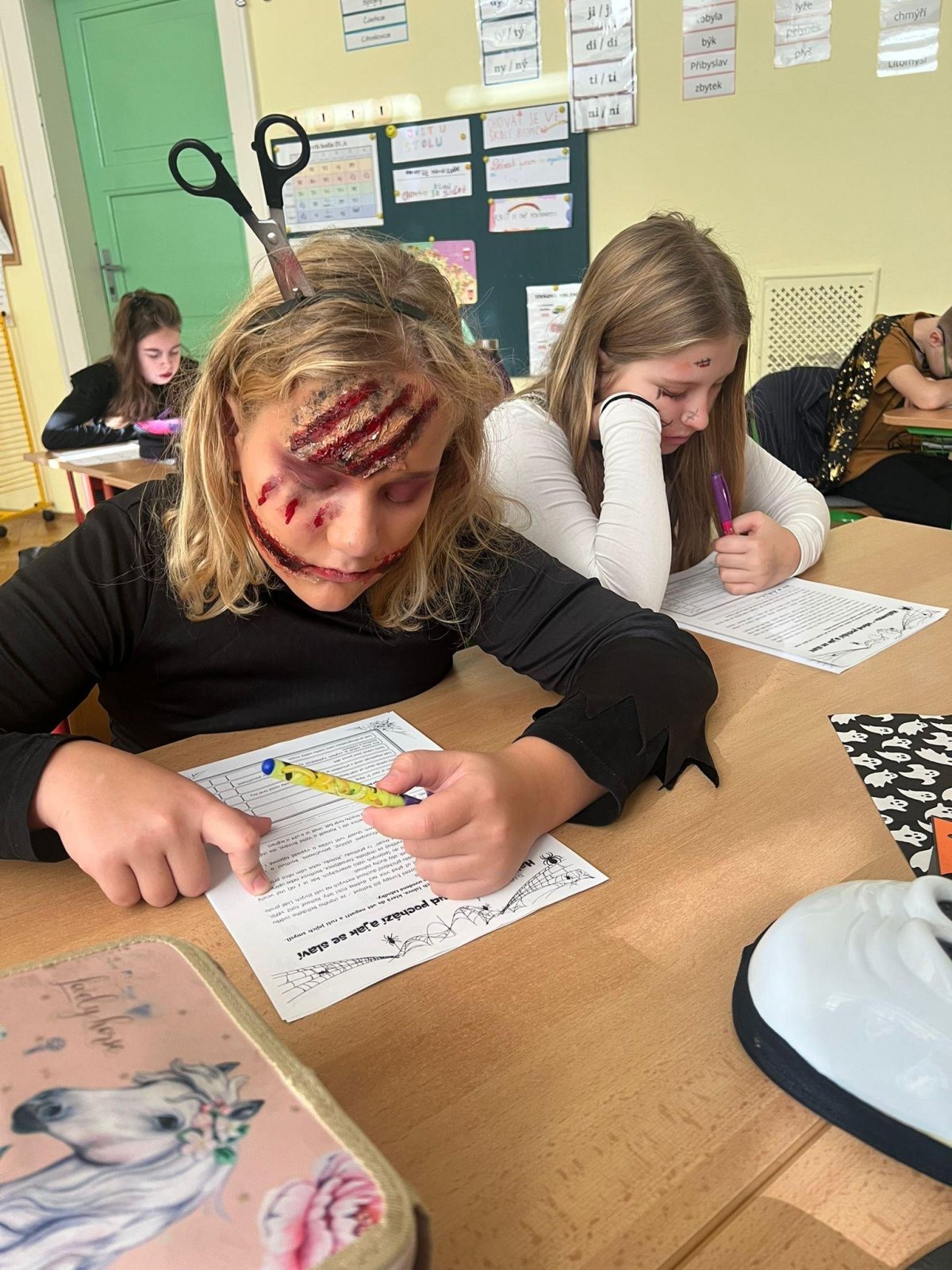 31. října je den, kdy lidé po celém světě slaví Halloween - svátek, který pochází z dob Keltů a jejich života na území střední Evropy; svátek, který se postupně dostával do povědomí lidí po celém světě... Svátek, který si připomínáme i my Češi, přestože za náš považujeme až 2. listopad - Památku zesnulých. Některé momenty mají tyto svátky společné, v jiných se liší. To už si ale každý může dohledat a přešíst v nejrůznějších zdrojích. Vy teď však máte možnost podívat se, jak tuto tradici uchopili žáci 4.A.