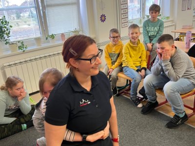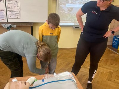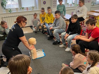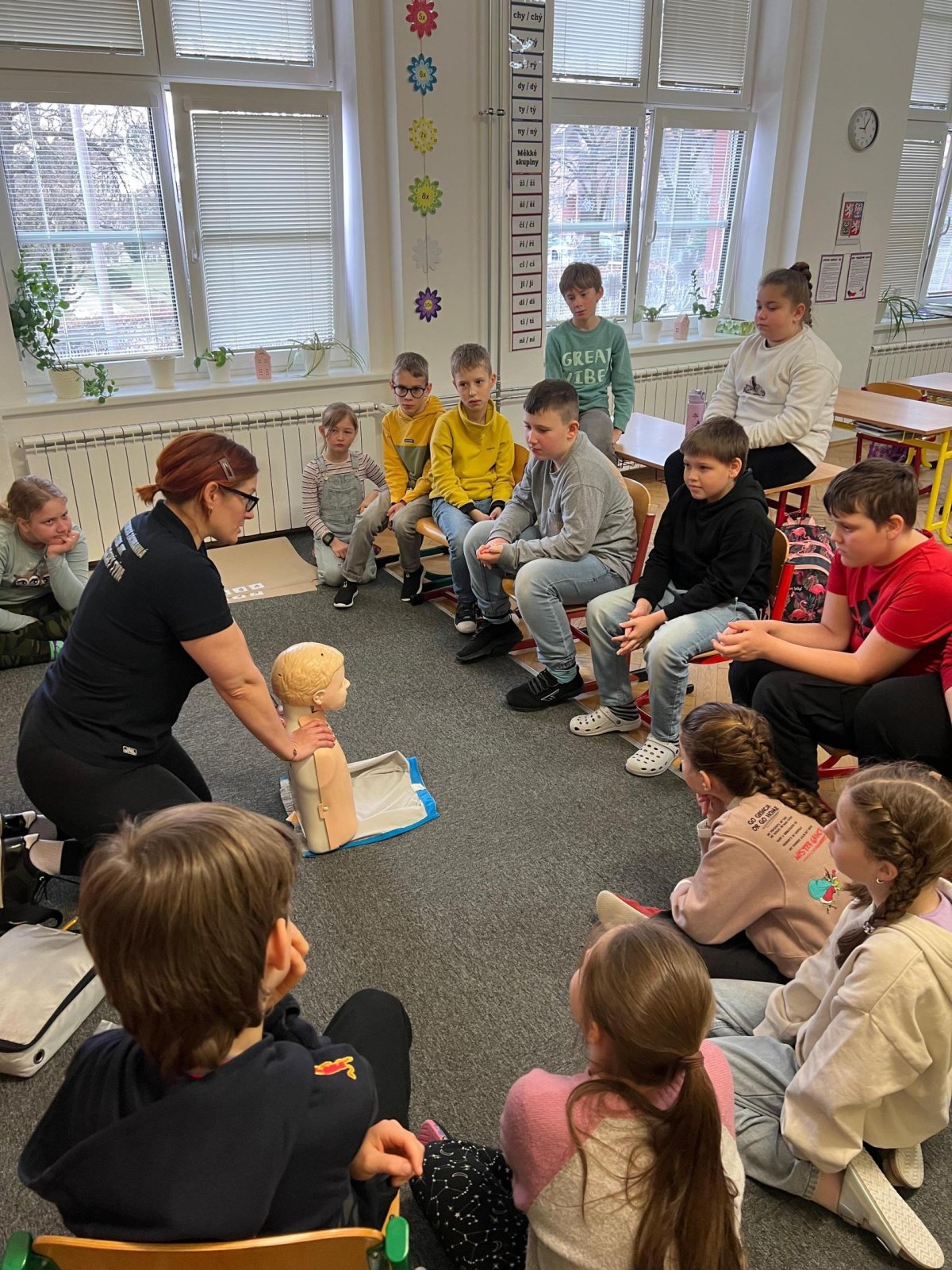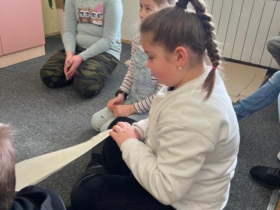 Pondělní ráno 16. března nám zahájila zdravotnice ze záchranné služby, která dětem vysvětlila a ukázala zásady první pomoci. Během programu si děti zkoušely různé postupy a způsoby, jak v případě potřeby pomoci kamarádovi nebo komukoliv jinému. Čas strávený se zdravotnicí Bárou Minaříkovou všechny moc bavil a my se těšíme na nějaké příští setkání.