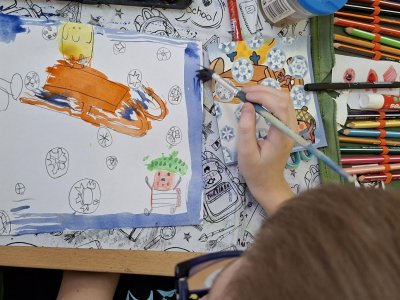 Tentokrát jsme si během hodin výtvarné výchovy hráli s liniemi a jejich uspořádáním, ale také jsme se pustili do ilustrací dětské knihy.