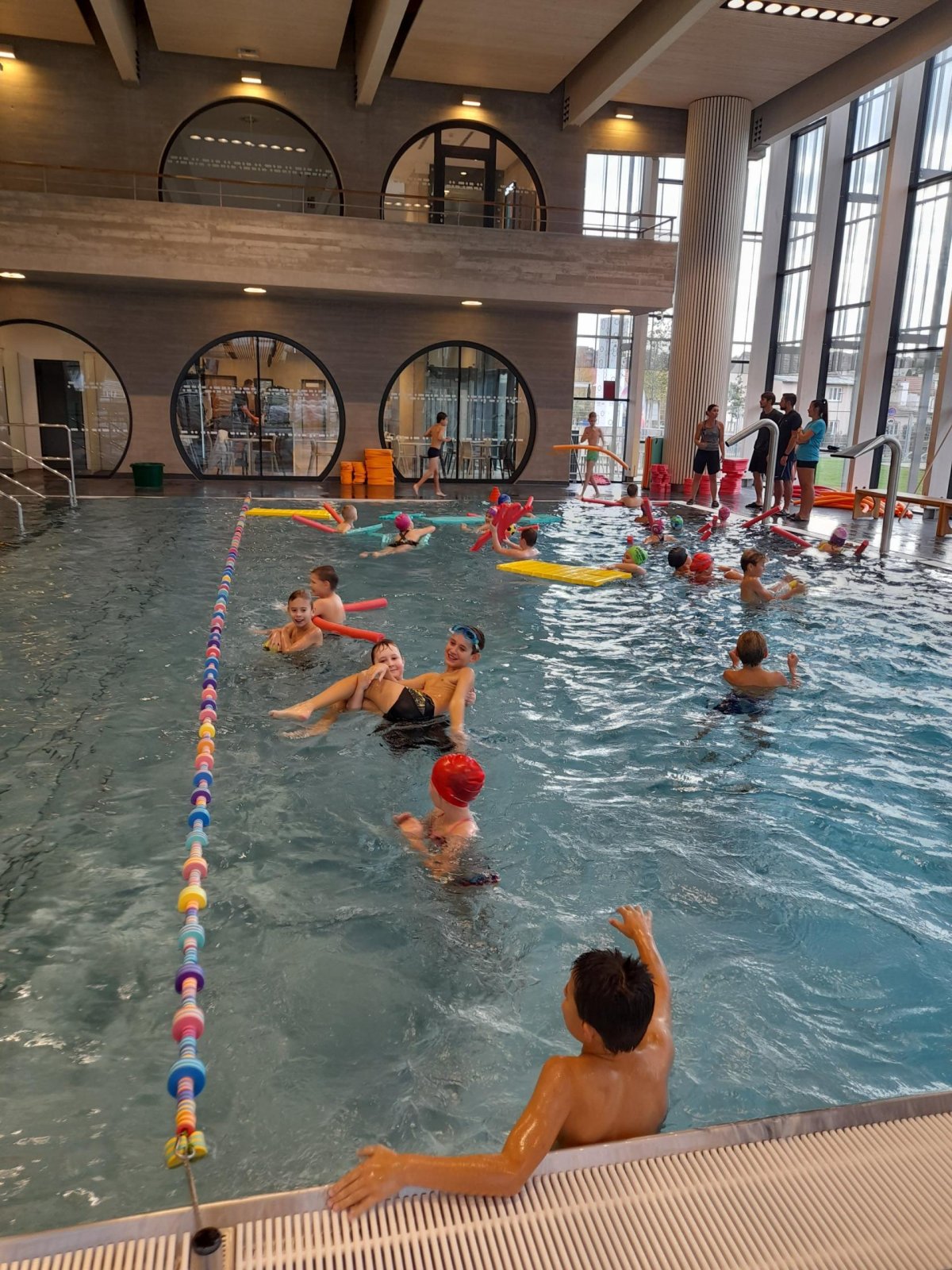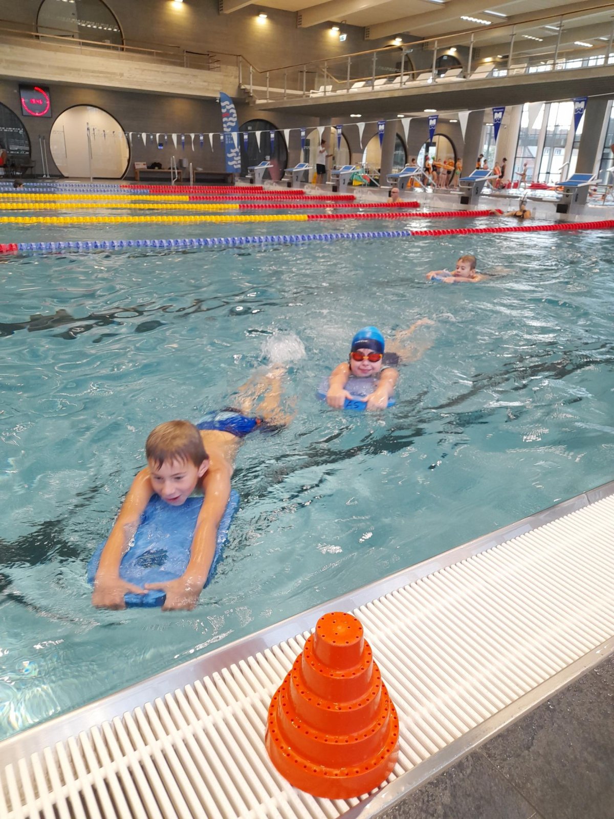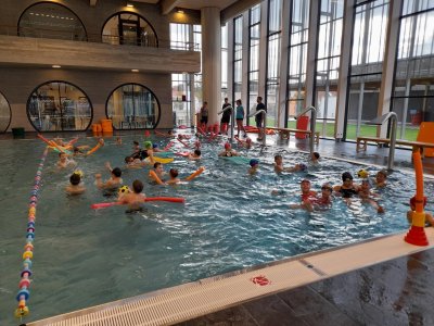 V říjnu pokračujeme v plaveckém výcviku, který si děti opravdu náležitě užívají. Nejenže se učí nové styly nebo se zdokonalují v dovednostech už dříve nebytých, ale těší se samozřejmě pokaždé i do volnější části každé hodiny - do menších a odpočinkových bazénů.