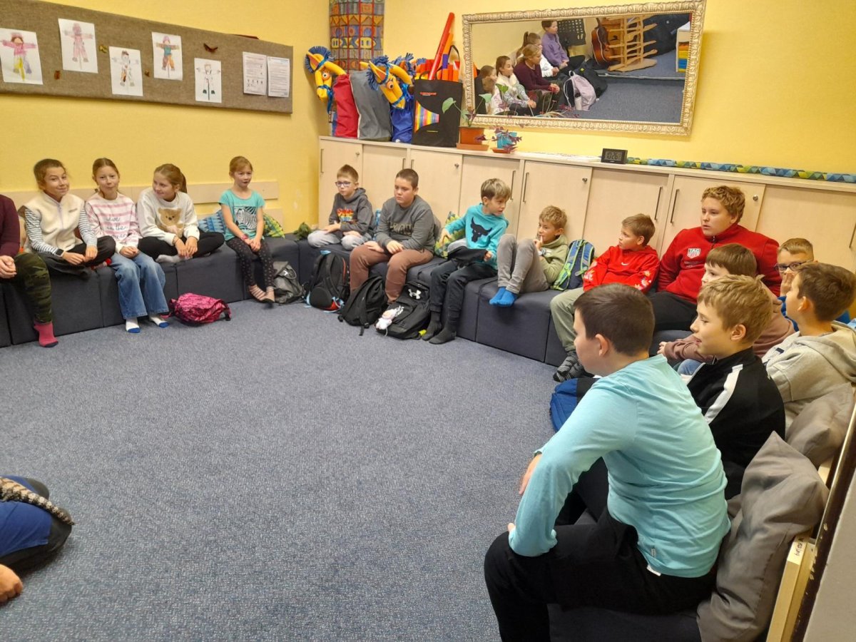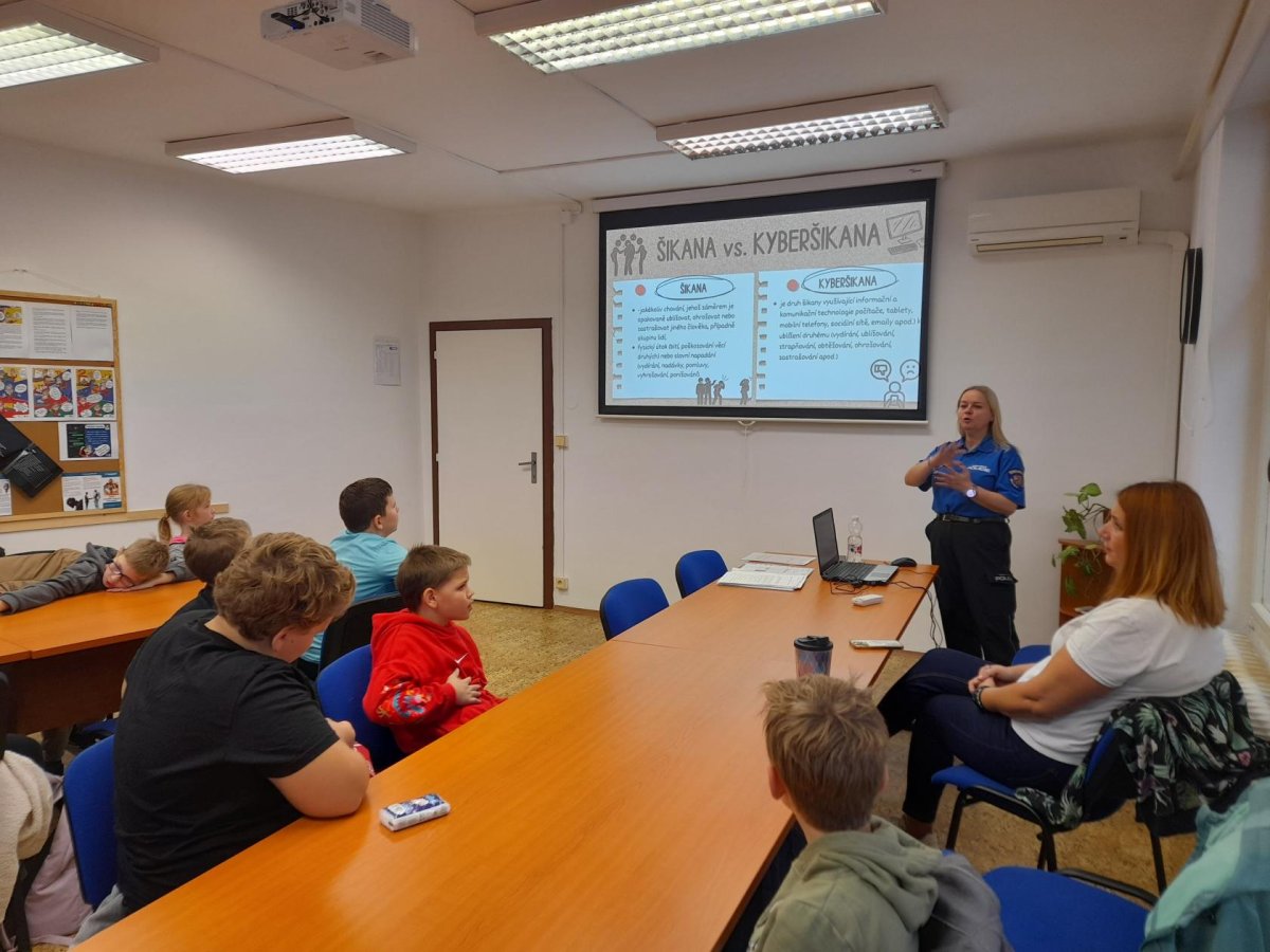 Čtvrteční exkurze byla pro naše čtvrťáky velmi zajímavá i poučná. Navštívili jsme nejdříve oddělení znojemské Městské Policie. Po příchodu náš přivítala paní Smutná, kterou jsme následovali do učebny. Připravené měla téma zabývající se vztahy mezi kamarády a hrozbami, kterými nás denně obklopují sociální sítě. Děti se dozvěděly rozdíl mezi šikanou a kyberšikanou a byly seznámeny s tím, jakým chováním ve fyzickém i virtuálním světě jim mohou předcházet. Ve druhé části programu nás paní Pajdlová provedla Střediskem volného času. Žáci si zahráli spoustu zajímavých her a během závěrečné skupinové hry na Pevnost Boyard si vždy nezúčastnění z nich vyhráli s domácími mazlíčky. Jak se svým volným časem budou dále nakládat, to už je teď zase na nějakou dobu v jejich rukou a na jejich rozhodnutích. Držme jim pěsti, aby byli vždy tak dobrými kamarády, jako jsem teď a aby dokázali čelit různým nešvarům této rychlé a moderní doby.