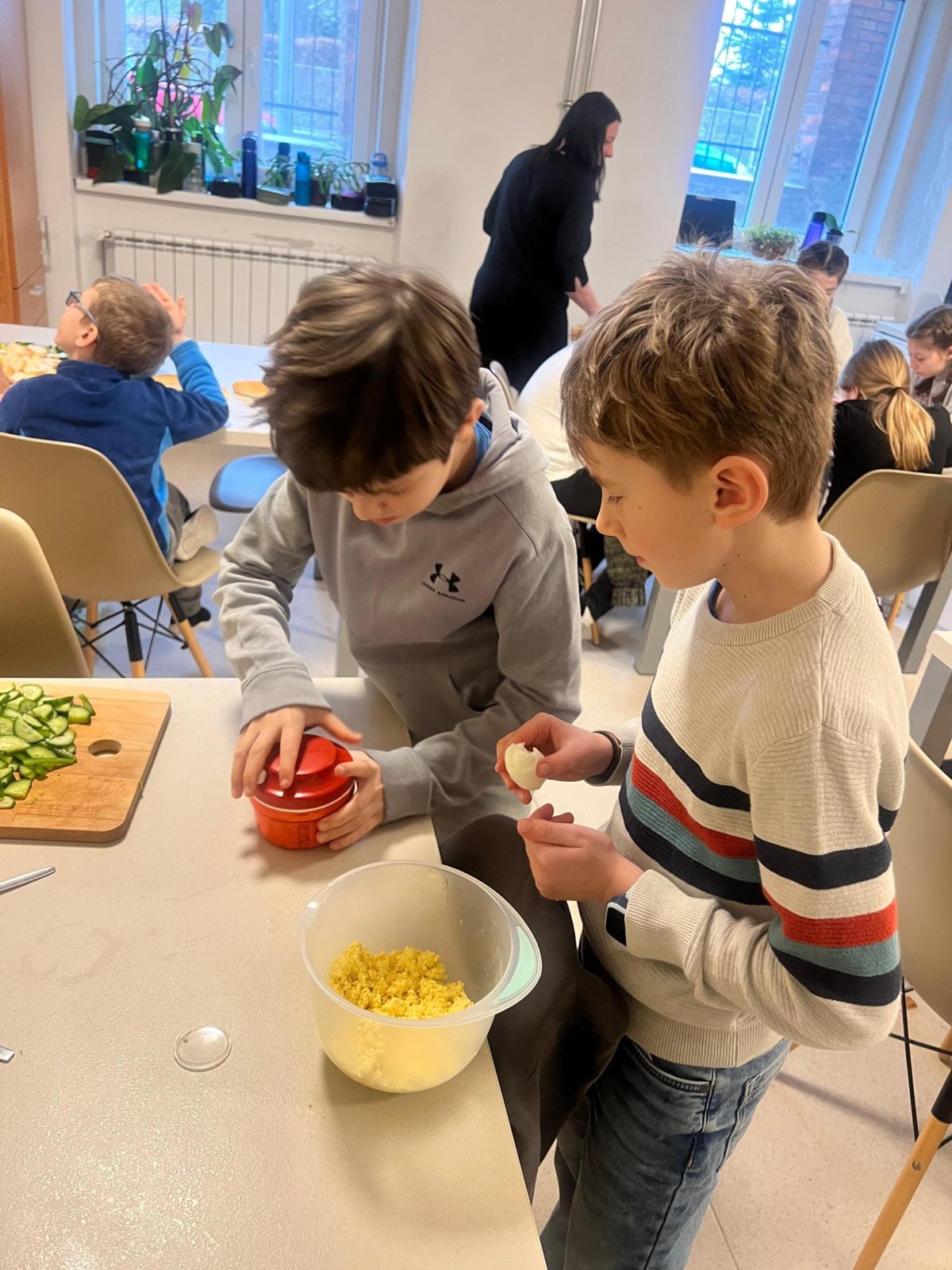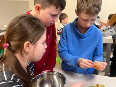 V pracovních činnostech začátkem února si naši žáci vyzkoušeli přípravu pomazánek a pečení čokoládových Muffinů. Byli rozděleni do čtyř skupin a každá z nich se věnovala jednomu receptu. Pomazánky žáci připravovali pod vedením paní asistenky, zatímco pekařkám pomáhala třídní paní učitelka. Hodina pracovních činností byla spojena s hodinou českého jazyka, takže si žáci v rámci slohové výchovy také prošli práci s připraveným pracovním listem, jehož tématem byl opět recept a vše, co k němu patří. Na konci svého snažení, po ochutnávkách a úklidu místnosti, si všichni opravdu pochutnali.