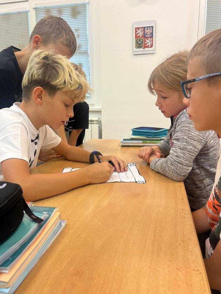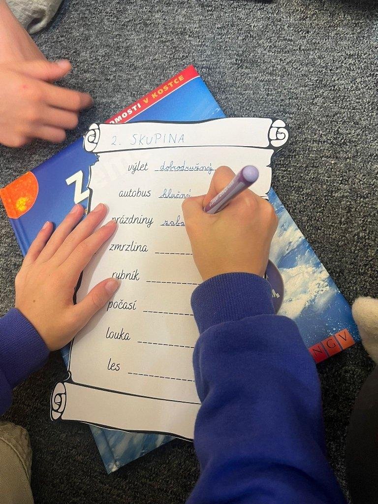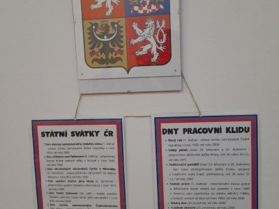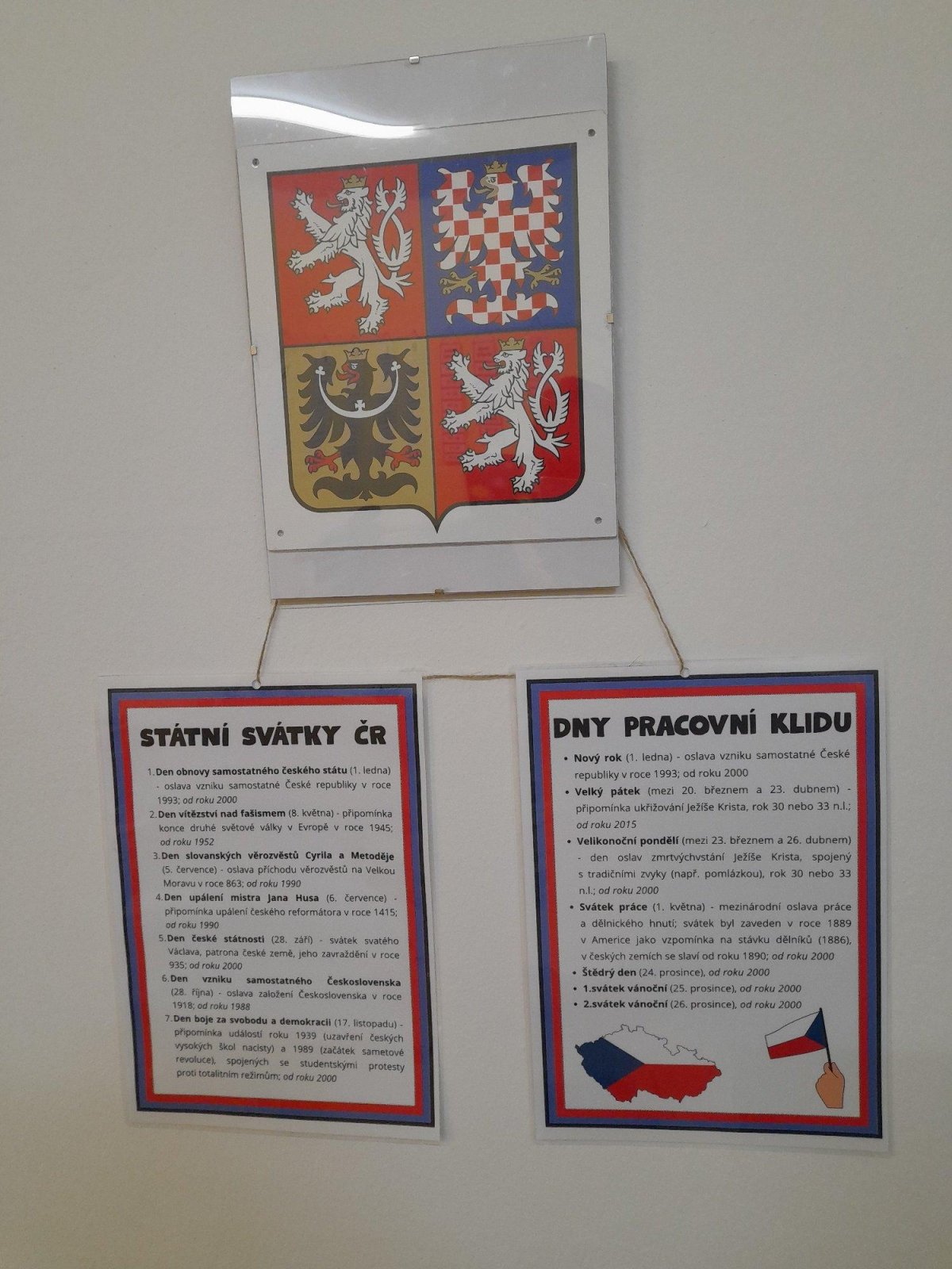 Školní práci si zpříjemňujeme různými metodami, abychom neseděli jenom v lavicích. Někdy žáci doplňují text v hodině Čj, v hodinách vlastivědy pro změnu hledají v kalendáři, aby si připomněli naše, české, státní svátky. Jejich původ jsme sice v hodině nestihli vyhledat, protože otáčení stran kalendáře a hledání jednotlivých dnů bylo přece jenom časově náročnější, ale pro zvídavé žáčky je u nás ve třídě vyvěšený pod symbolem Velkého státního znaku.