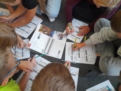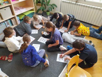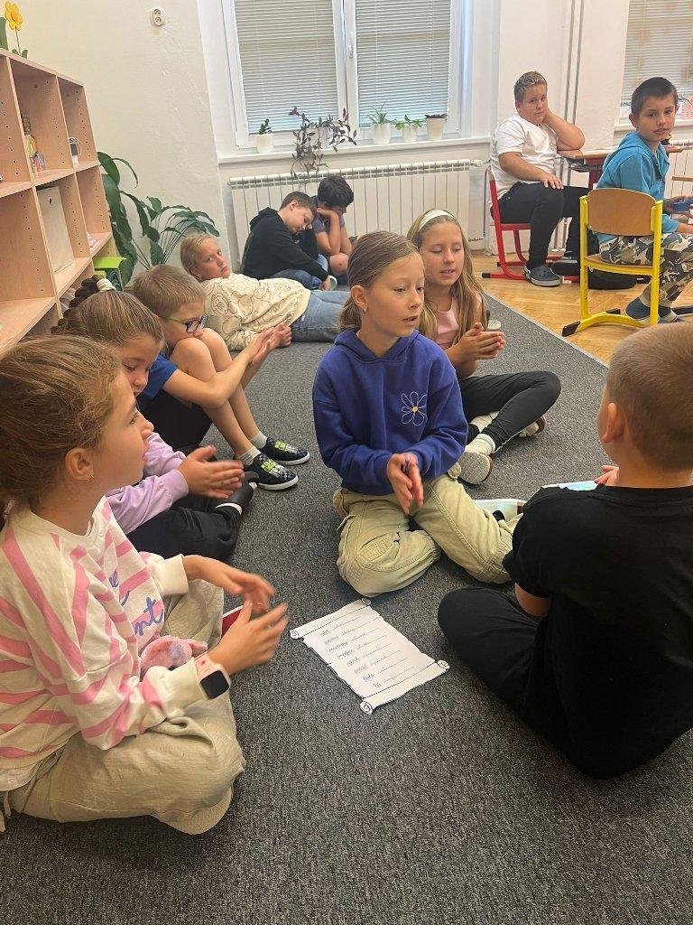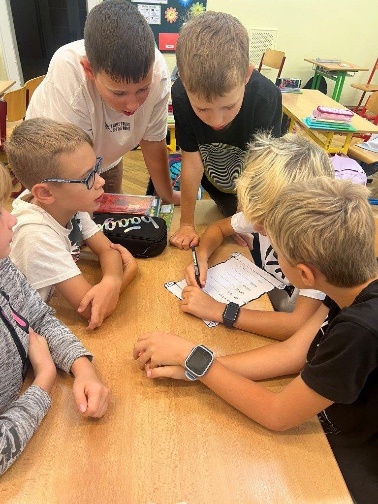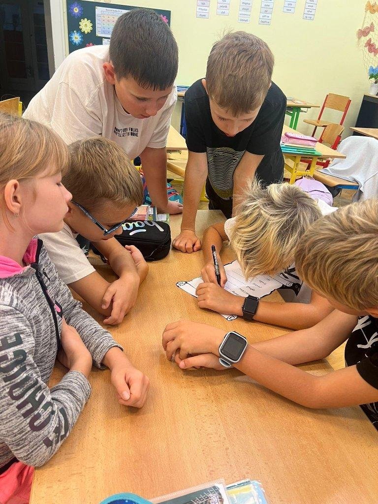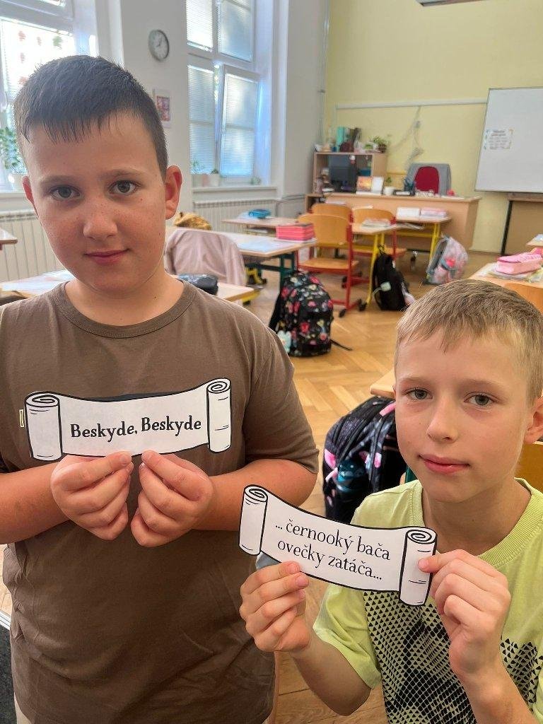 Školní práci si zpříjemňujeme různými metodami, abychom neseděli jenom v lavicích. Někdy žáci doplňují text v hodině Čj, v hodinách vlastivědy pro změnu hledají v kalendáři, aby si připomněli naše, české, státní svátky. Jejich původ jsme sice v hodině nestihli vyhledat, protože otáčení stran kalendáře a hledání jednotlivých dnů bylo přece jenom časově náročnější, ale pro zvídavé žáčky je u nás ve třídě vyvěšený pod symbolem Velkého státního znaku.