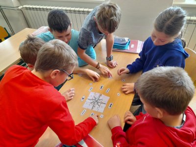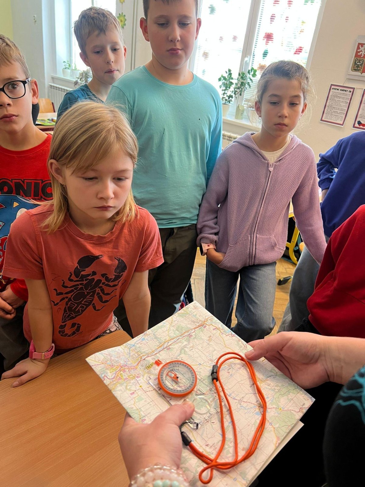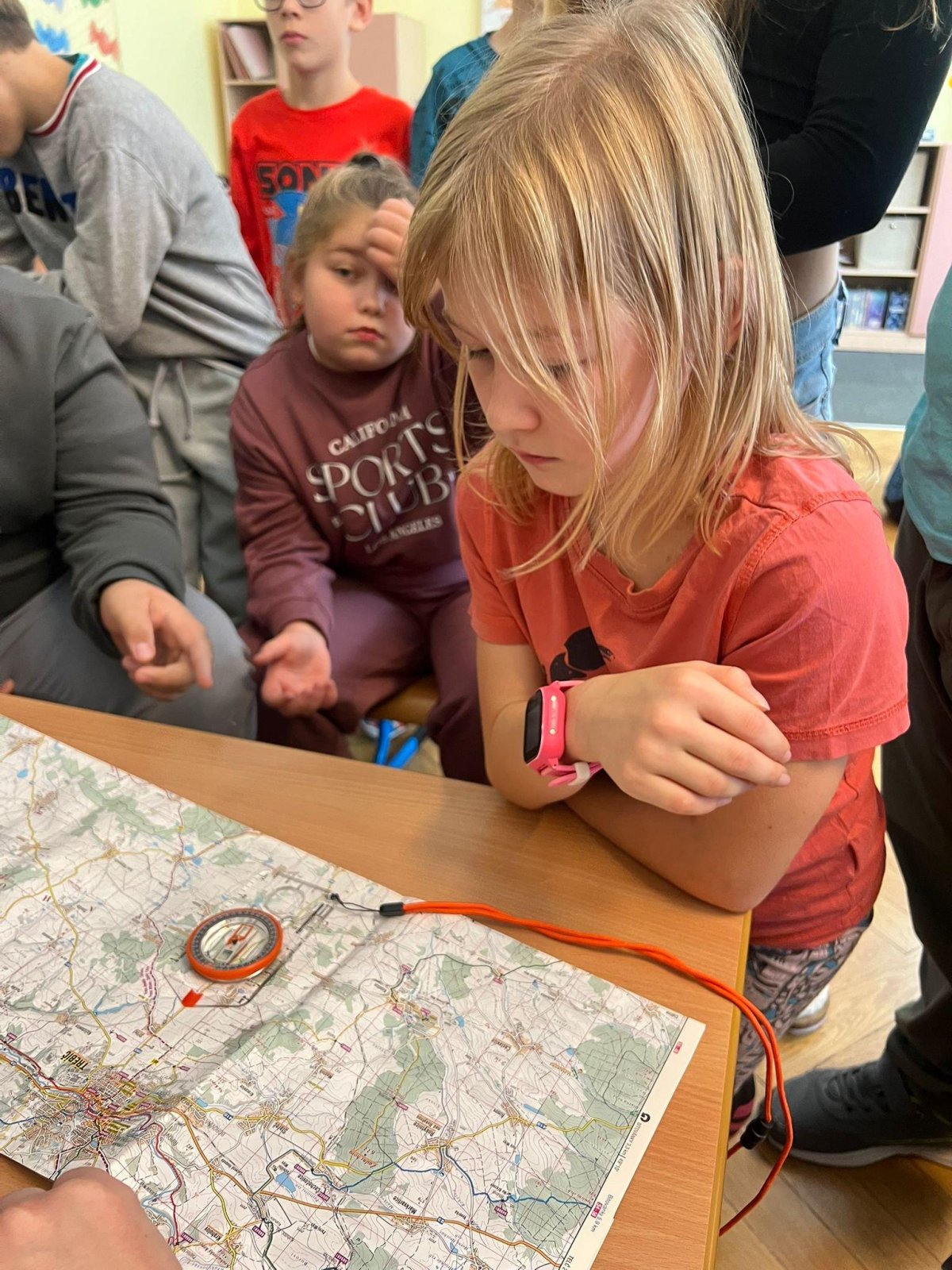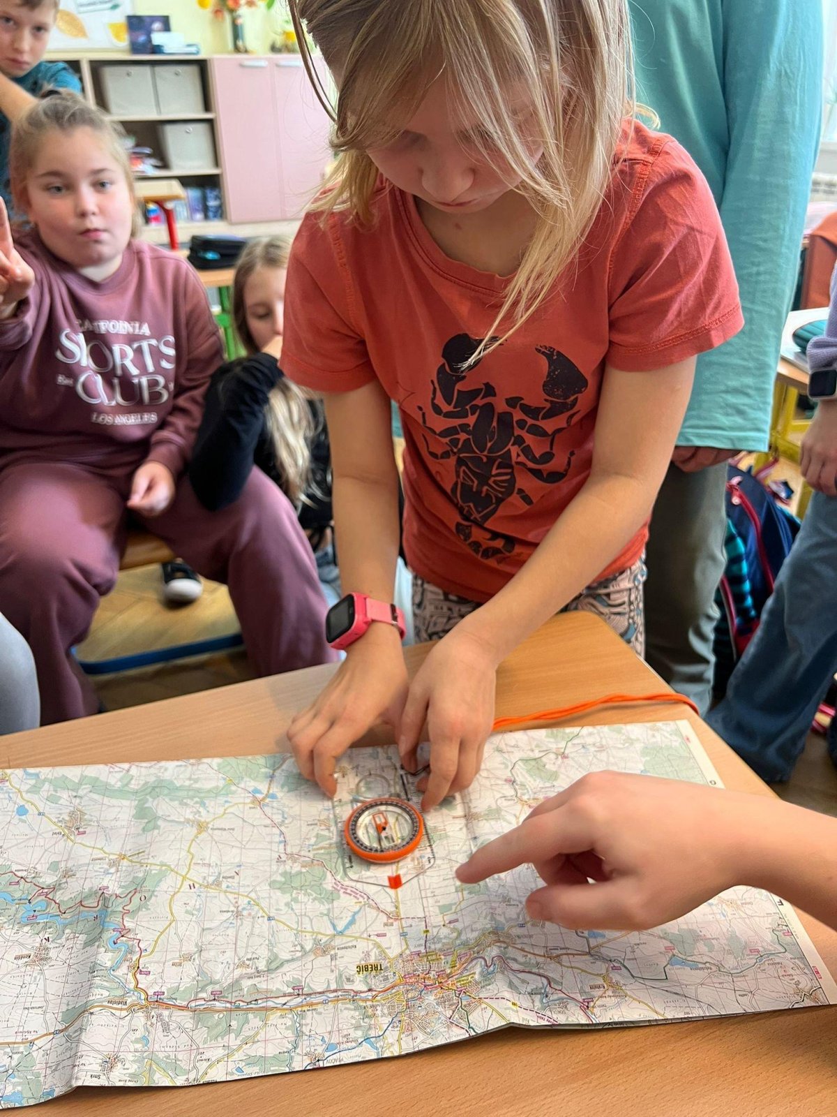 Vlastivěda, to je kromě spousty zajímavostí také práce v terénu. A jak jinak začít, než pochopením práce s buzolou. Dnes jsme směrovali turistickou mapu na sever. Jen je někdy škoda, že hodina není delší. :-)