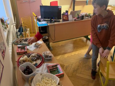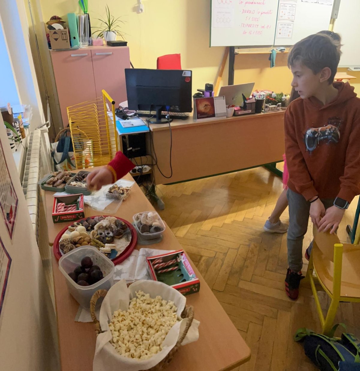 Atmosféru předvánoční doby si mnozí zpříjemňují večírky, obdarováváním přátel drobnými dárečky, vzájemným setkáváním a sdílením... vzduch je provoněn zimou, radostí i vůněmi Vánoc - cukrovím, ovocem, svíčkami... mnozí z nás jsou citlivější a vnímavější ke všem a všemu... A takovou vánoční atmosféru jsme si vykouzlili i ve třídě. Vše Vám poví naše foto-vzpomínky. A také všichni všem děkujeme za dárečky, maminkám za úžasné sladké cukroví...