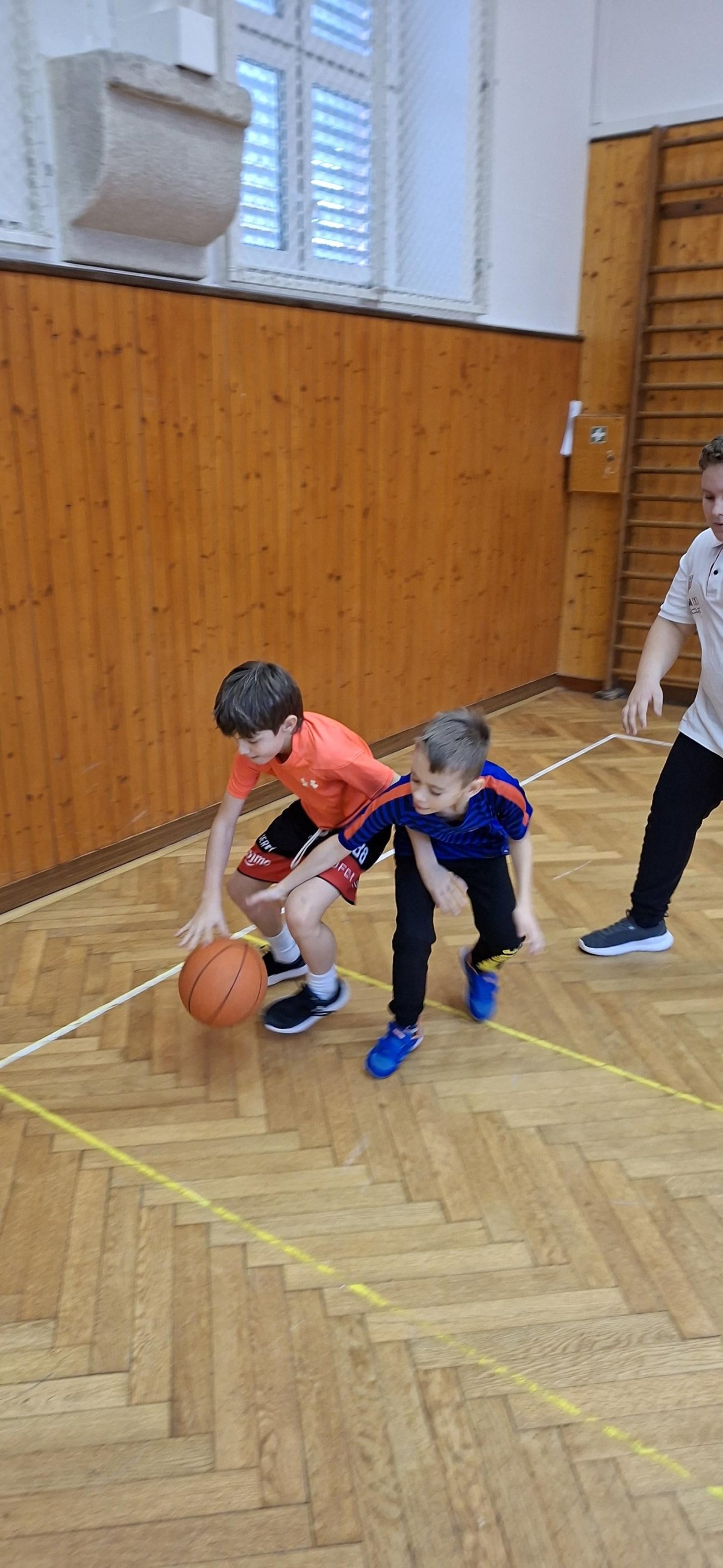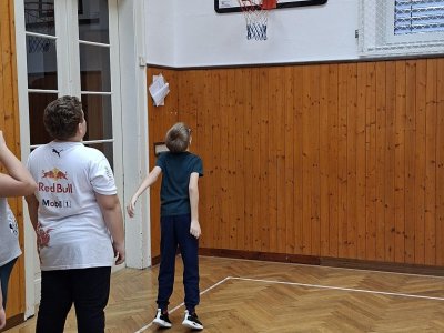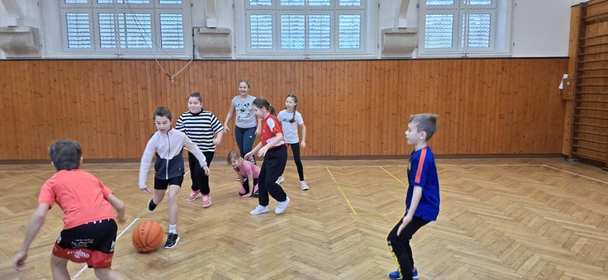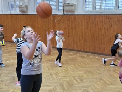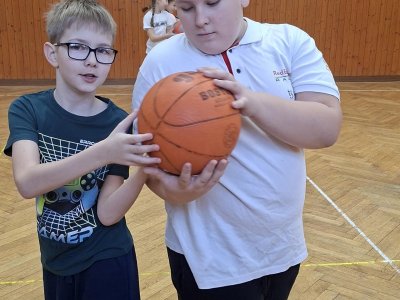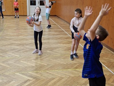 Míčové hry jsou součástí výuky tělesné výchovy, a tak jsme si dnes se žáky 4. ročníku připomněli základy basketbalu. Přestože nám chyběl dostatečný počet vhodných míčů, nezoufali jsme a některá cvičení jsme prováděli s jinými balóny. A že toto děti od cvičení neodradilo, na to se pojďte podívat společně s námi. První byla honička s míčem, kdy měli míč sebrat spoluhráčům. Potom jsme se s míči rozcvičili a následoval nácvik driblování a přihrávek. Závěrem byly hody na koš. A veřte, šlo jim to... :-)