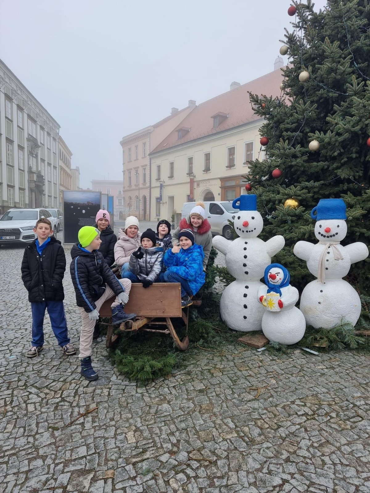 Dne 10. 12. 2025 jsme se společně s dětmi vydali do města, a to jednak se podívat na předvánoční Znojmo a jednak podpořit děti z naší školy při vystoupení na Masarykově náměstí. Děti nádherně zazpívaly vánoční písně a přispěly tak ke krásné vánoční náladě. Naši třídu reprezentovali dva žáci, a to Líza Klotchko a Erik Žiga, který krásně zazpíval i sólově. Bylo to hezké pozorovat děti, jak podporují své spolužáky při pěveckém výkonu. Každým dnem se více přibližujeme ke Štědrému dni a je milé, to i takovými drobnými a společně strávenými chvílemi, dětem zpříjemnit.