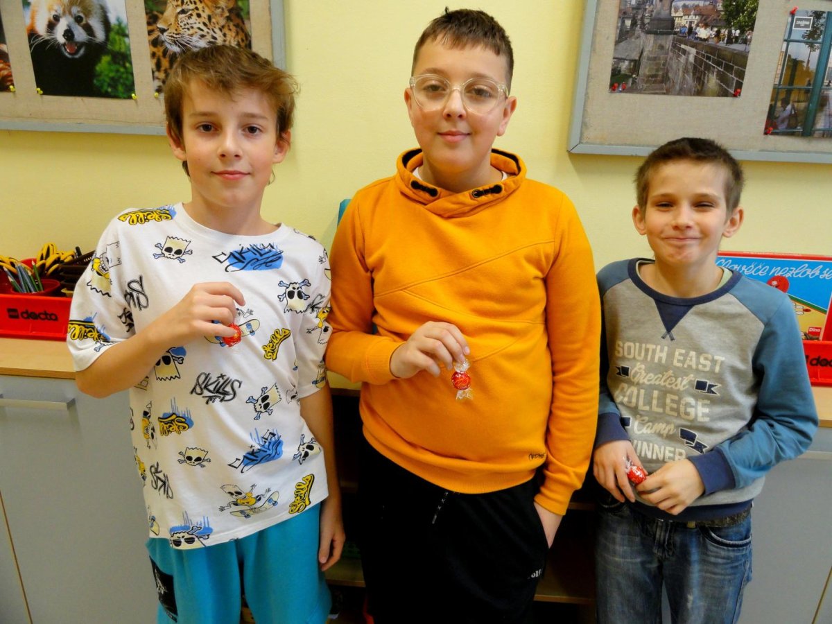 vánoční písničky, při vyhlašování jsme si rozdělili mléčné Lindor