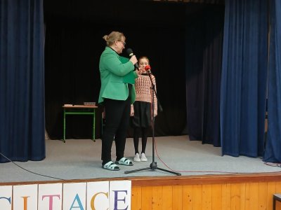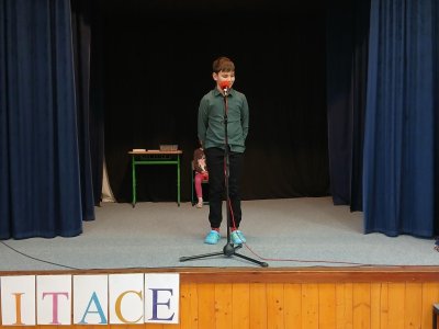 Na recitační soutěž jsme letos vyslali dva zástupce. Oba se vzorně připravovali a oba předvedli skvělý výkon. Od Nikolky zazněla próza a od Samíka poezie. Není jednoduché překonat trému a přednášet na jednu stranu s klidem a zároveň s emocemi, které daný příběh či báseň vyžadují. Oběma moc děkujeme a Nikolce ještě GRATULUJEME za postup do okresního kola.