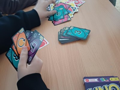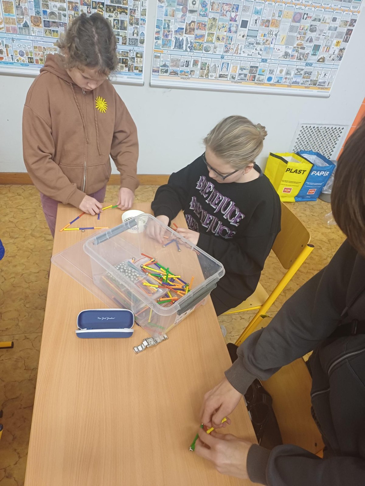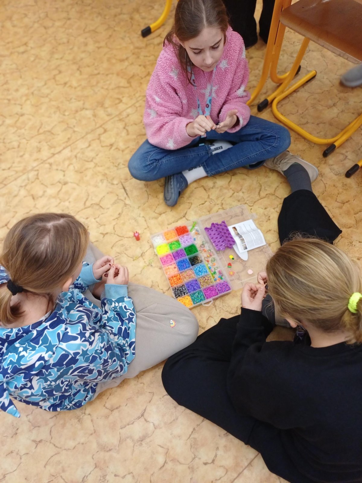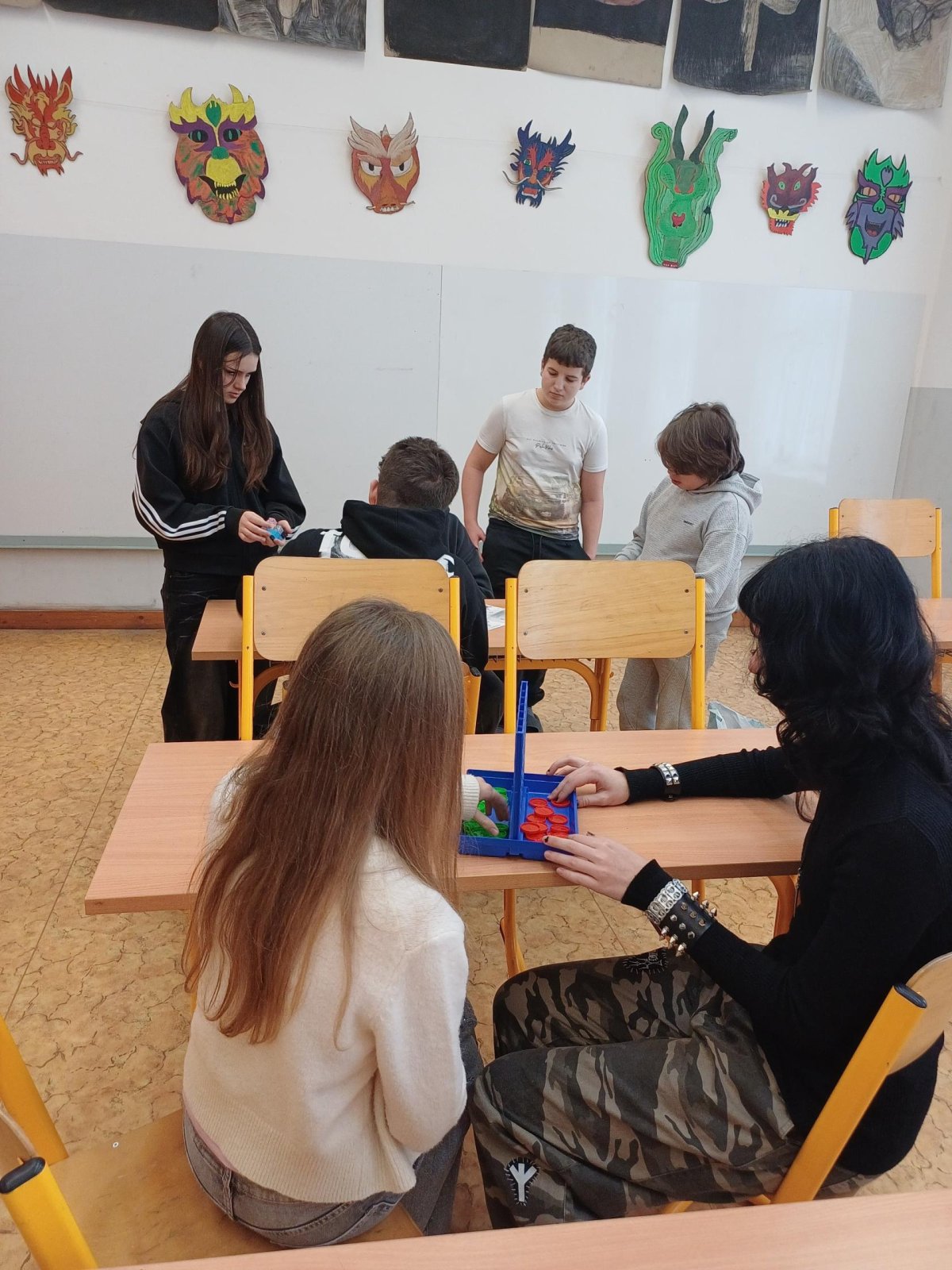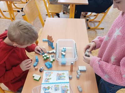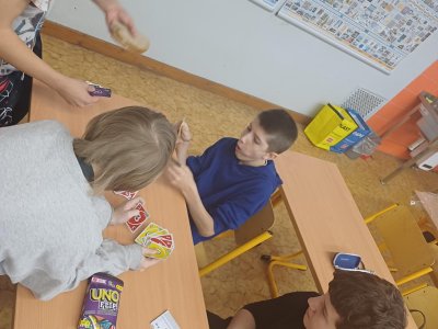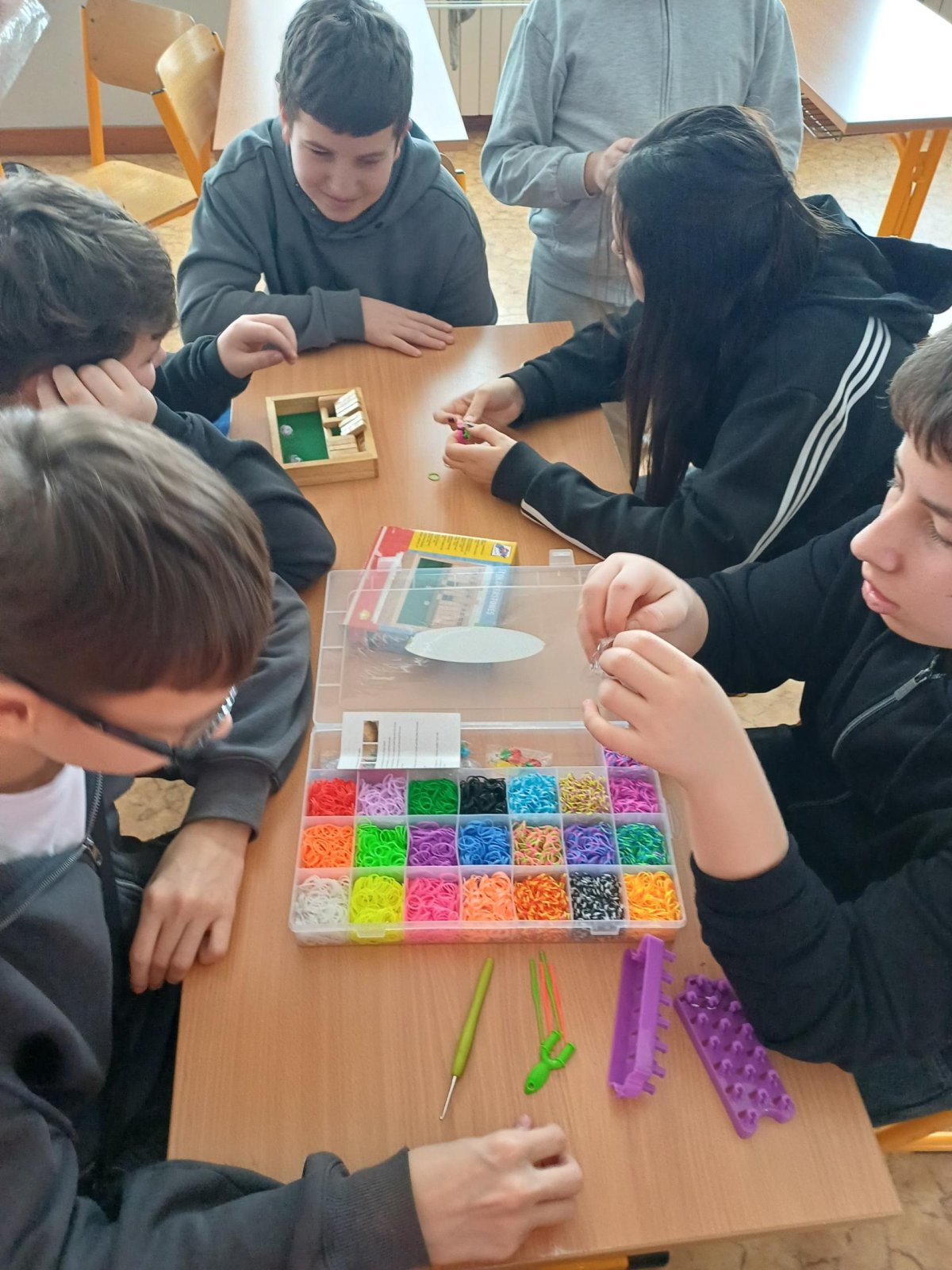Ježíšek nám letos nadělil spoustu nových přestávkových aktivit a stavebnic. O velké přestávce tak máme z čeho vybírat – od šachů, piškvorek a hry Uno přes různé magnetické stavebnice až po pletení náramků z gumiček.