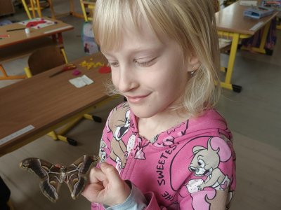 Byl to krásný a poučný zážitek, který možná v dětech probudil zájem o přírodu a její proměny. A to není všechno. Některé děti překonaly velký strach, nechaly si motýla lézt po prstech.
