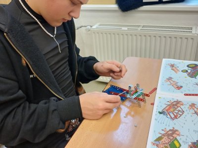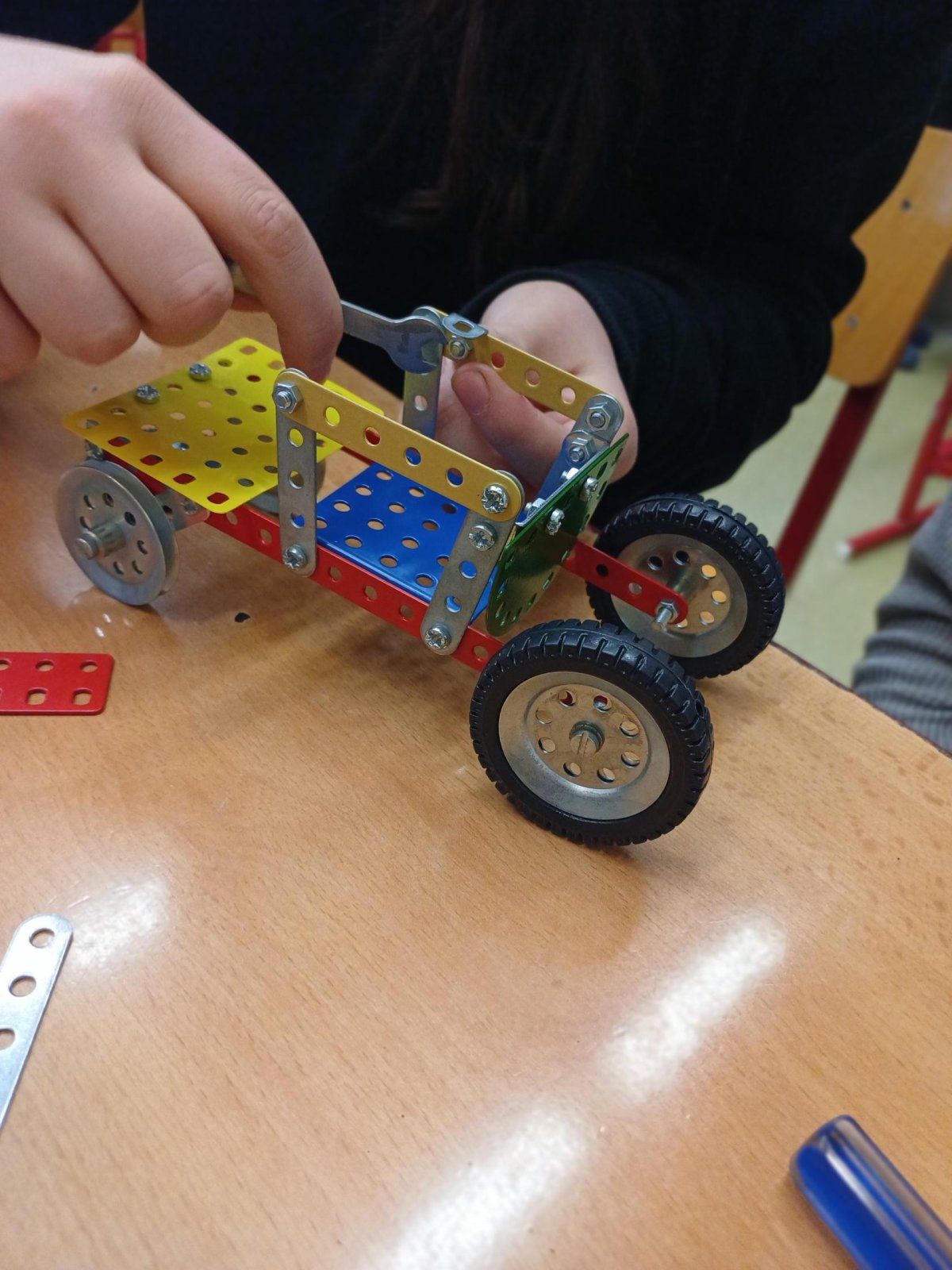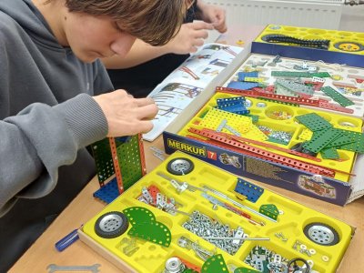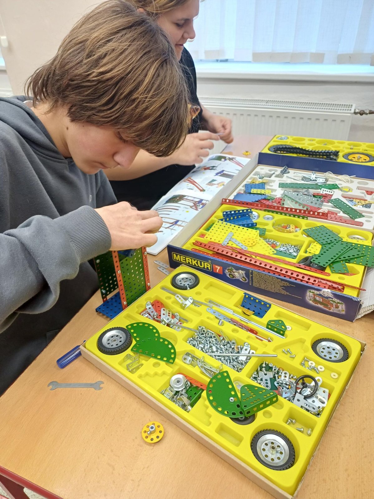 V hodinách DaKu se postupně loučíme se stavebnicí Merkur. Některé z nás tato stavebnice nadchla natolik, že nevyráběli jen podle návodu, ale zkoušeli i vlastní konstrukce. Učili jsme se trpělivosti, práci s návodem a zároveň jsme si procvičili jemnou motoriku, technické i logické myšlení.