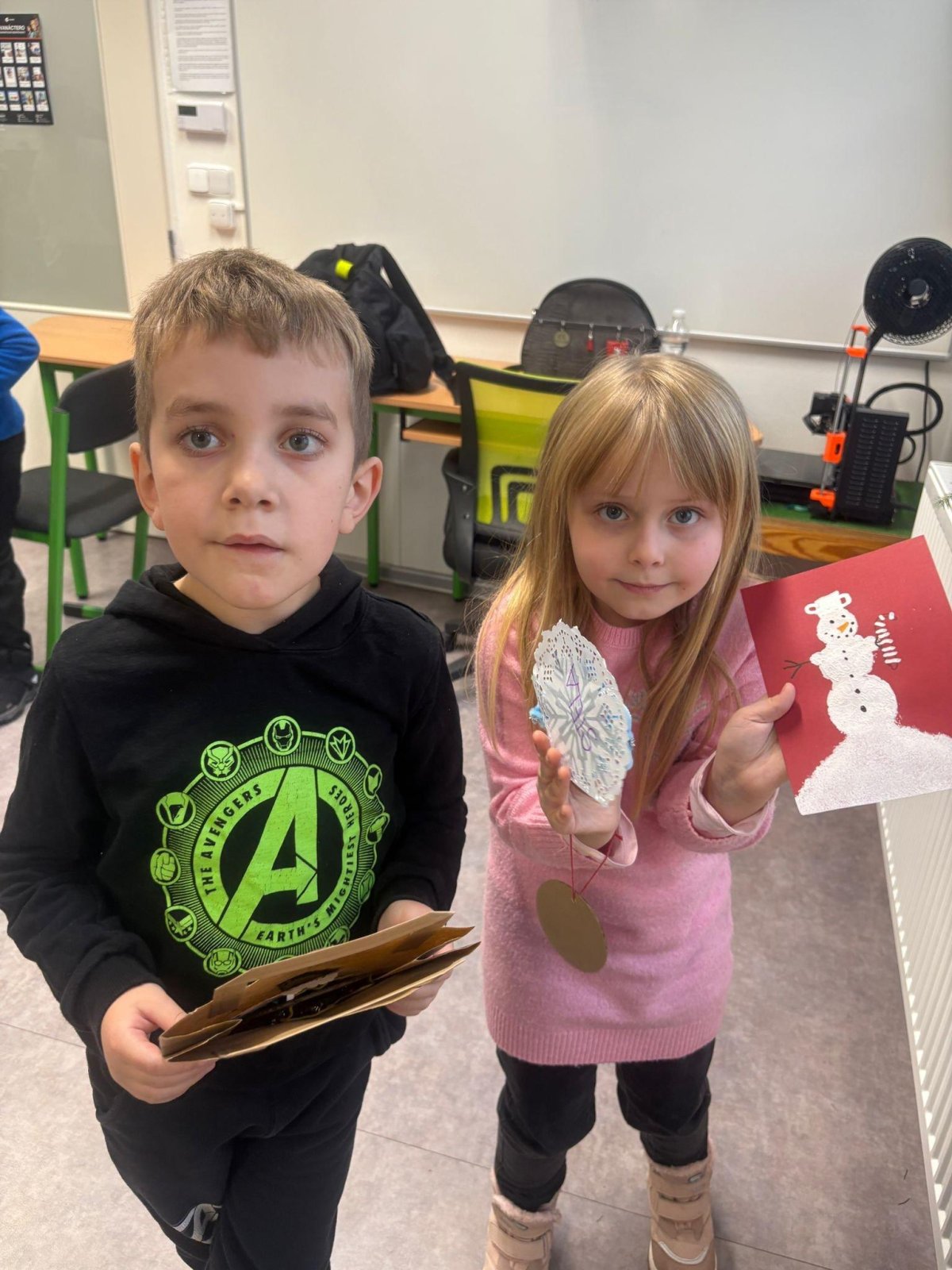 Děti se při všech návštěvách ihned zapojily a vytvořily několik vlastnoručně vyrobených vánočních dekorací a přání.