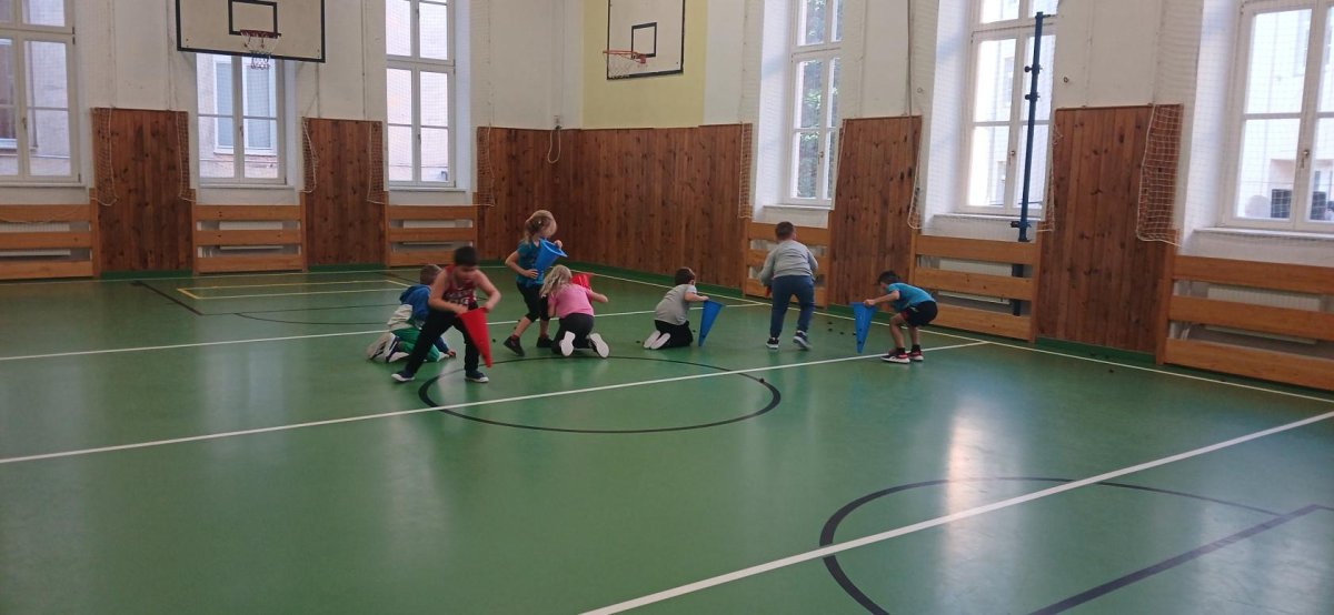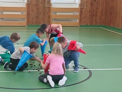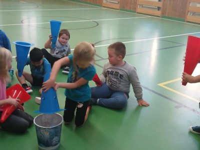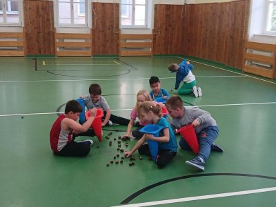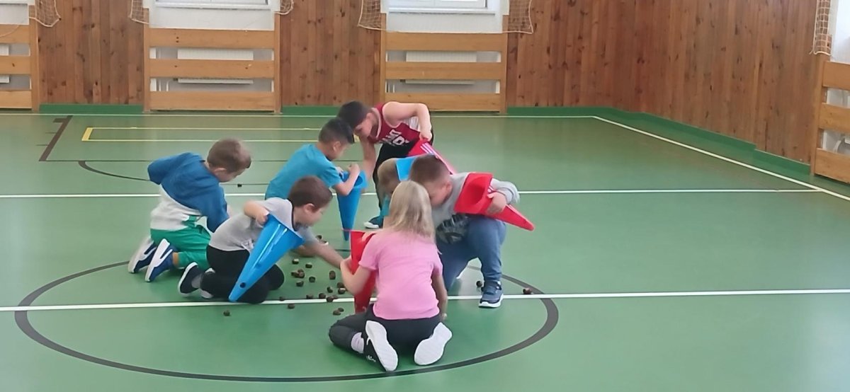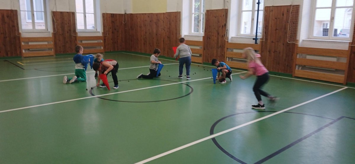 Lokomoční dovednosti jako jsou chůze,běh,skok,lezení a plazení děti rozvíjely hrami s přírodninami a pohybovými činnostmi s využitím cvičebního náčiní.