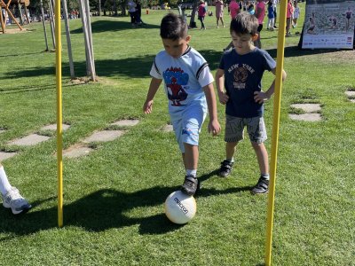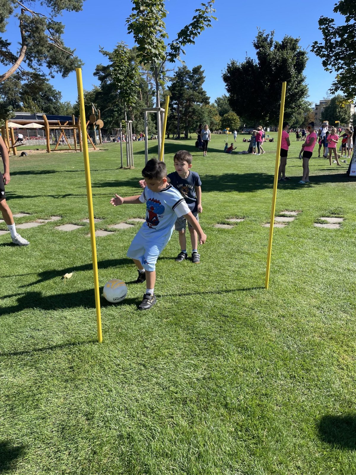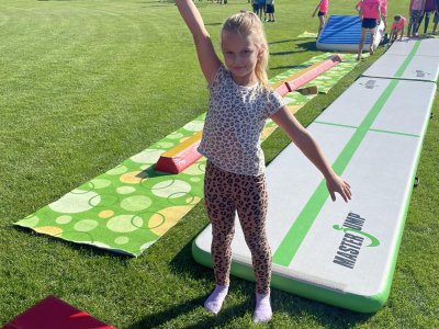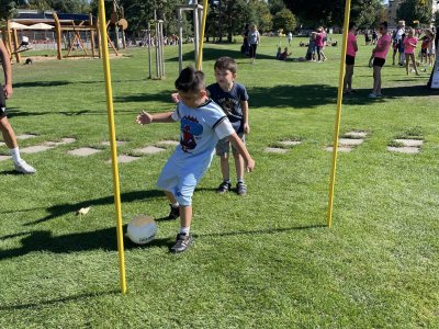 Sportovní disciplíny pro každého Na louce jsme si mohli vyzkoušet pestrou škálu sportovních aktivit – od běhu přes překážky, hod míčkem až po týmové hry jako vybíjená nebo štafetový závod, fotbal, florbal. Každý si našel něco, co ho bavilo, a společně jsme si užili spoustu legrace.