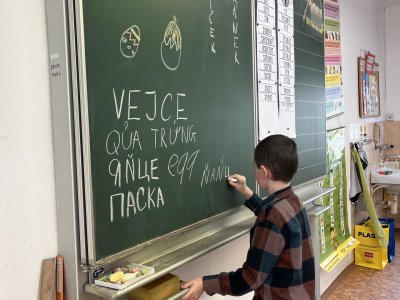 Zajímavou částí našeho povídání bylo také poznávání jiných jazyků. Dozvěděli jsme se, jak se řeknou „Velikonoce“ a „vejce“ ukrajinsky, vietnamsky a romsky. Bylo zajímavé slyšet, jak různě mohou tato slova znít, a uvědomit si, jak pestrý je svět kolem nás.