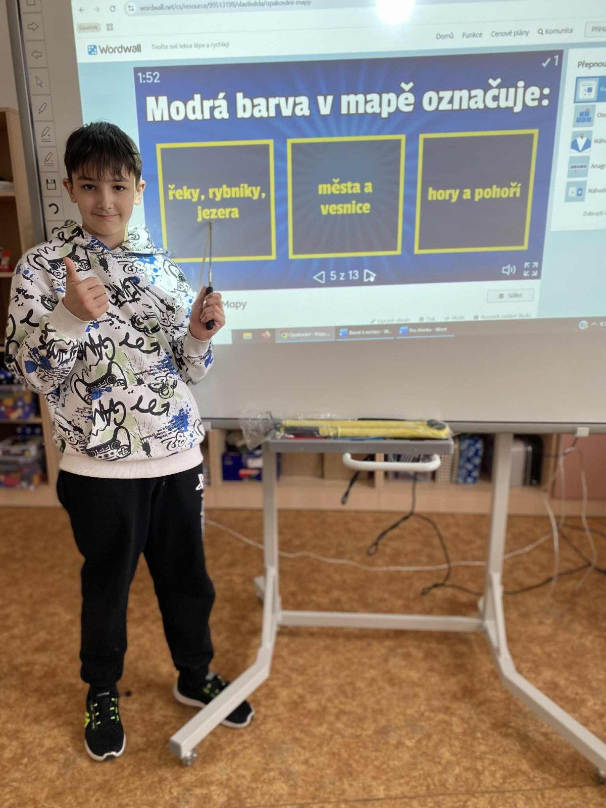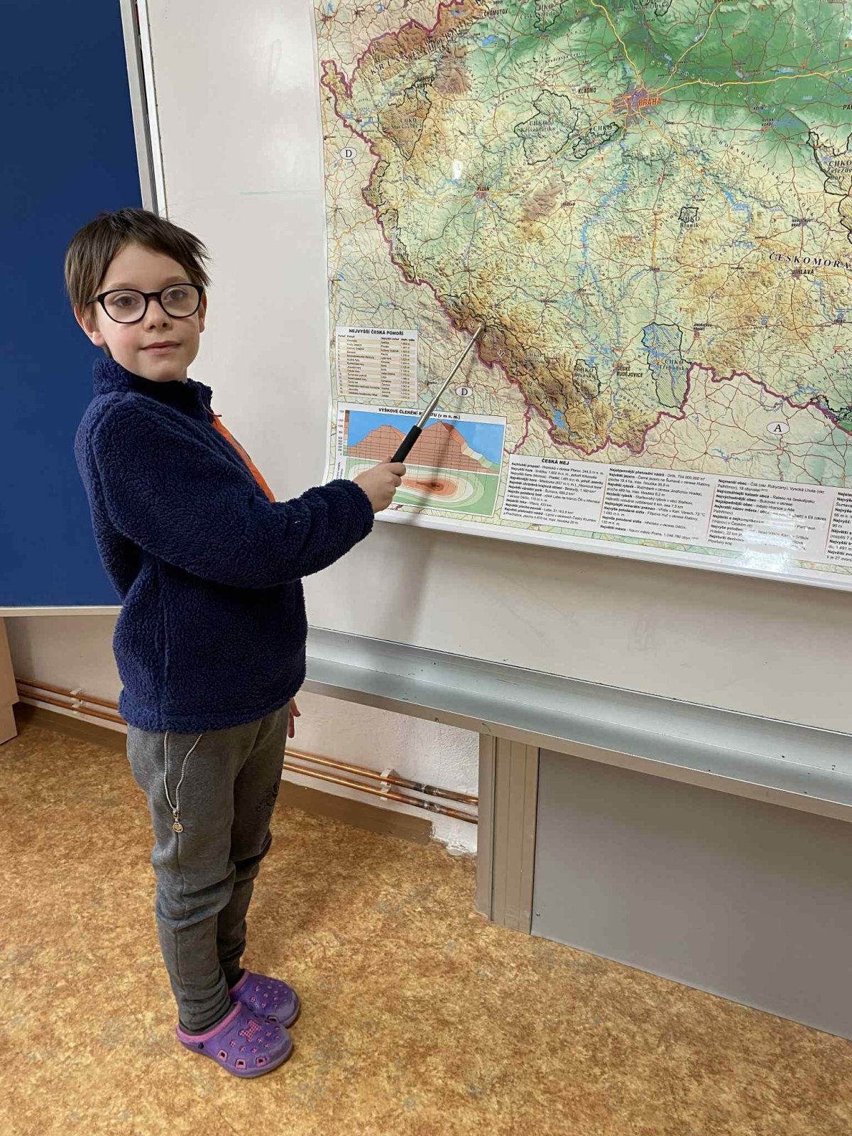 Mapa České republiky je u nás skoro pořád v akci. Víme, kde jsou řeky, hory i nížiny, a rádi to ostatním ukážeme. Pracujeme ve skupinách, plníme pracovní listy, zkoušíme Wordwall a hlavně – přemýšlíme. Vlastivěda u nás prostě žije.