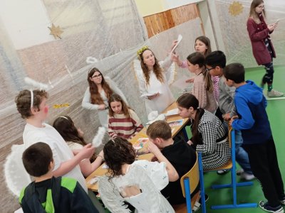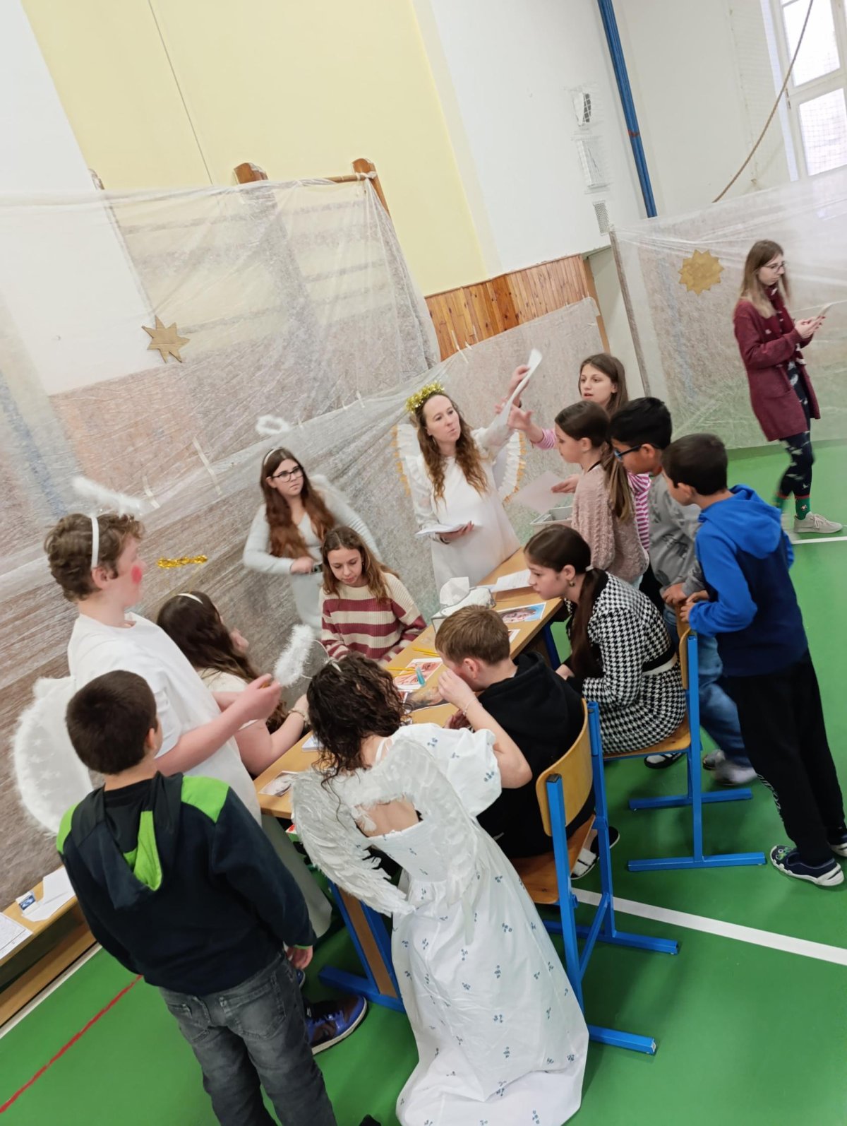 V pátek jsme společně zavítali do pekla. Bylo to děsivé, některé děti měly opravdu strach a pár výtečníků si dokonce vyzkoušelo pobyt v pekelném kotli. Nakonec vše dobře dopadlo a Lucifer nám všechny děti zase vydal. Odměnou nám byl pobyt v nebi, kde jsme si mohli vyzkoušet zábavné aktivity a nakonec jsme dostali i sladkou odměnu.