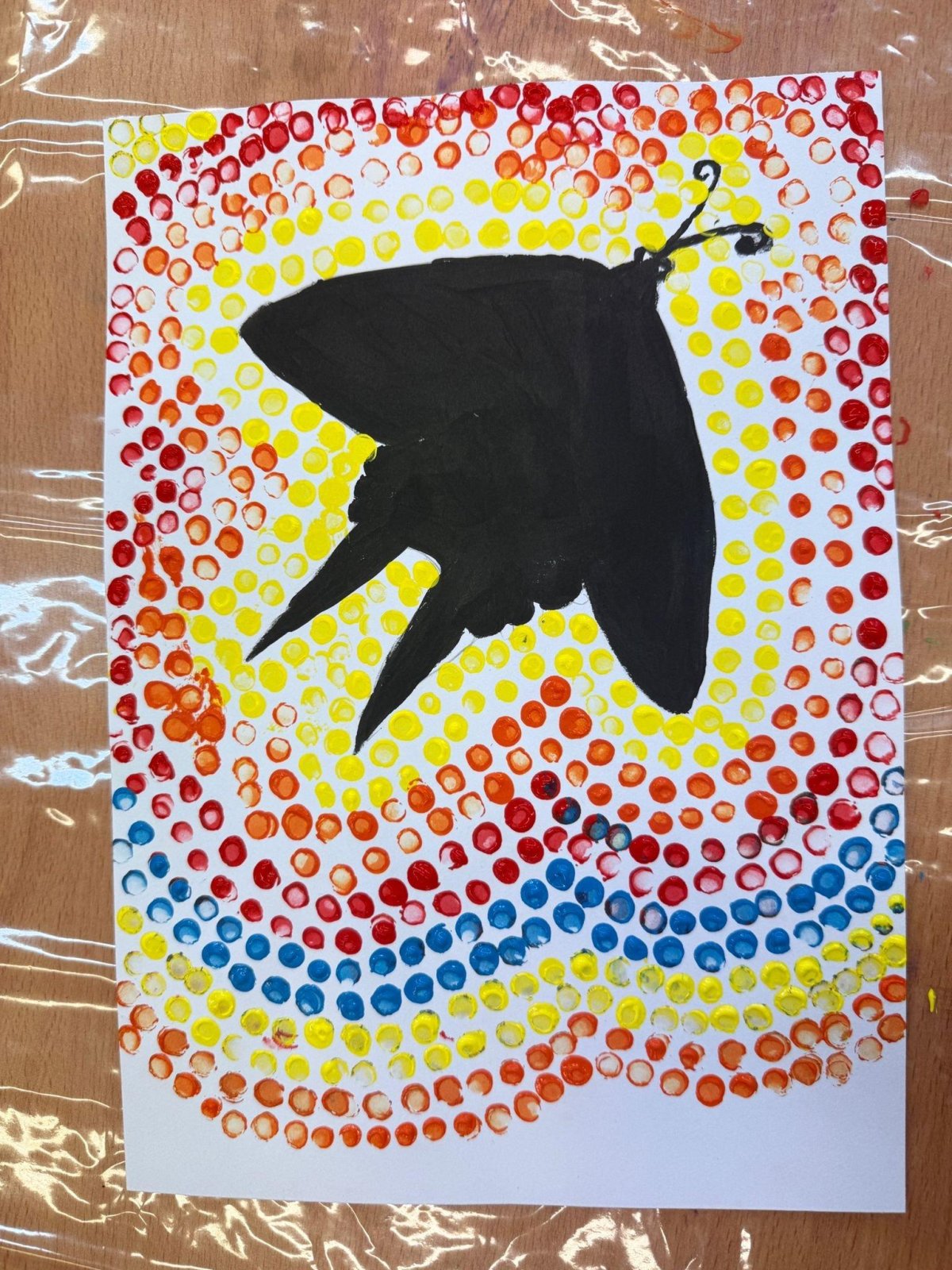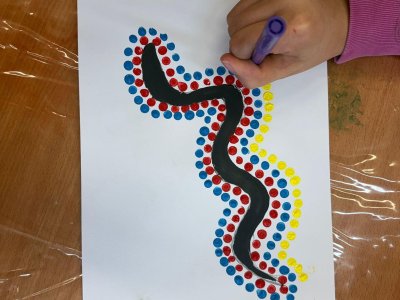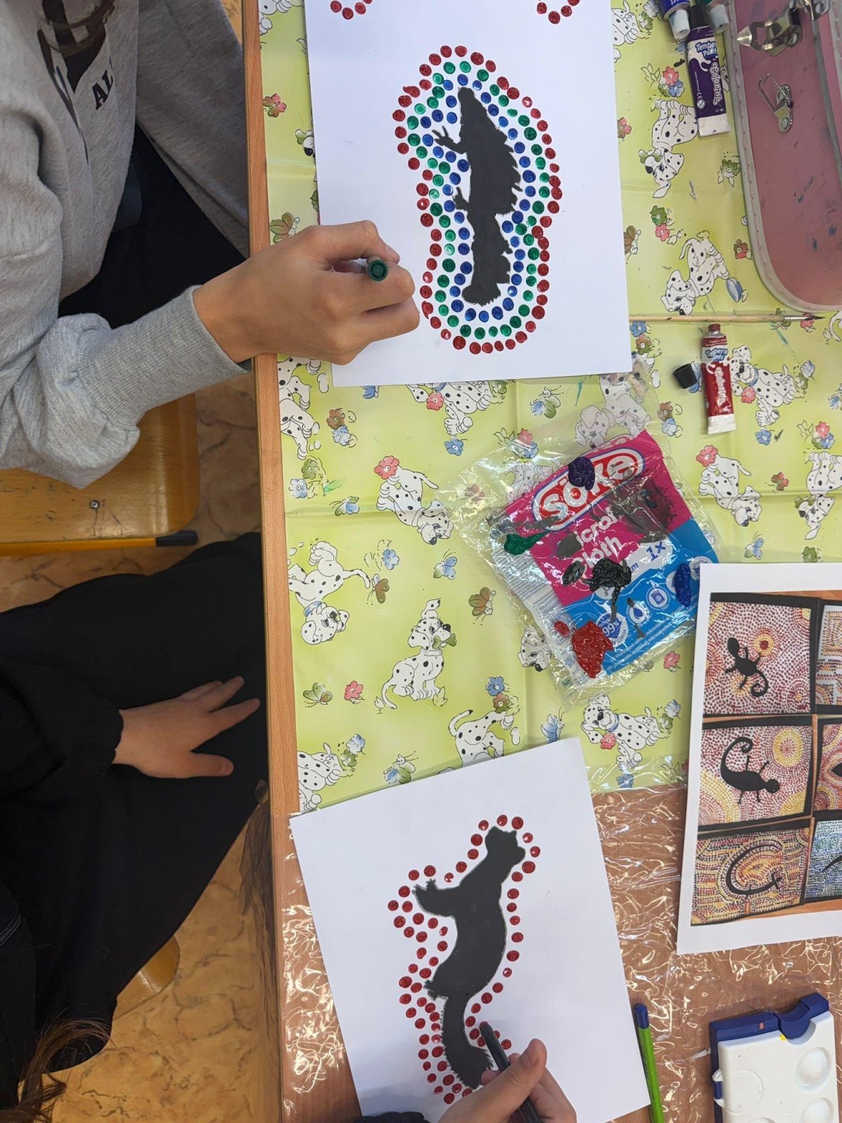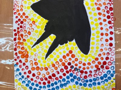 Nejprve si zvolili konkrétního živočicha a vytvořili jeho obrys. Ten pak dotvářeli pomocí barevných teček, které pečlivě nanášeli kolem tvaru těla. Díky této technice vznikly výrazné a originální práce plné barev, rytmu a kontrastů.