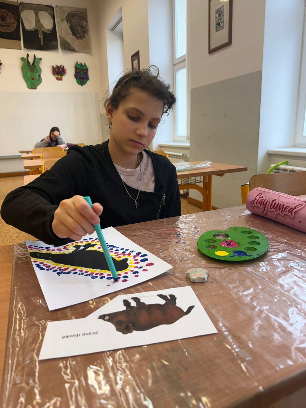 Žáci si tak nejen zopakovali informace o místní fauně, ale zároveň si vyzkoušeli netradiční výtvarný styl a práci s barvou a kompozicí.