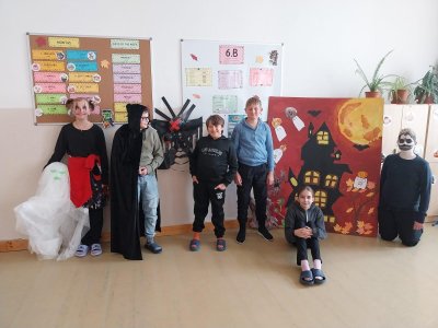 Naše třída 6.B se do letošního Halloweenu pustila s obrovským nadšením. I když jsme spolu teprve krátce, ukázalo se, že tvoříme skvělý tým. Společně jsme proměnili učebnu v strašidelně kouzelné místo plné duchů, netopýrů, dýní a pavouků – a výsledek stál za to.