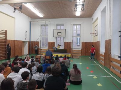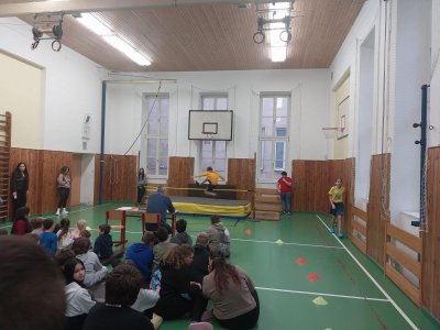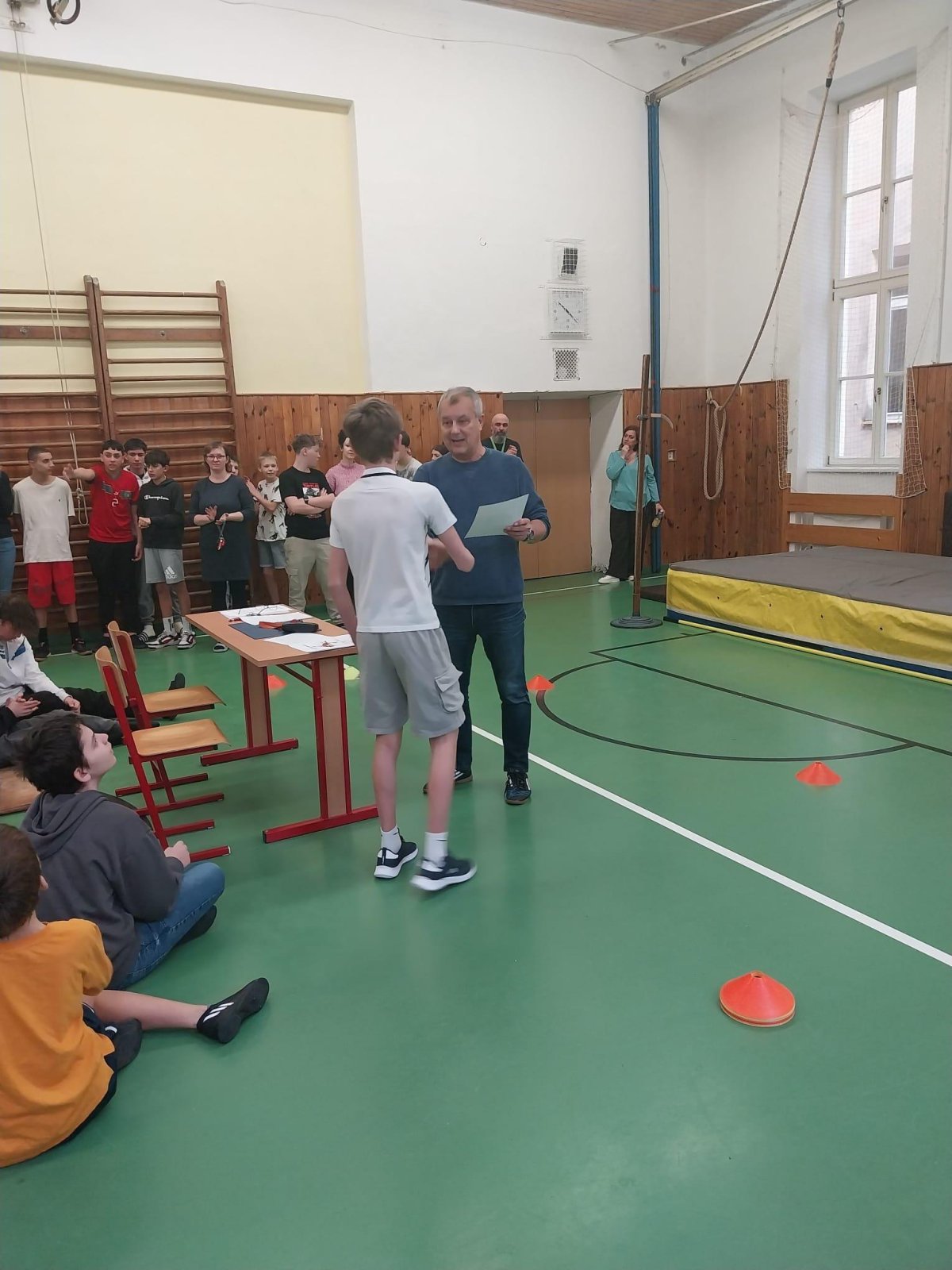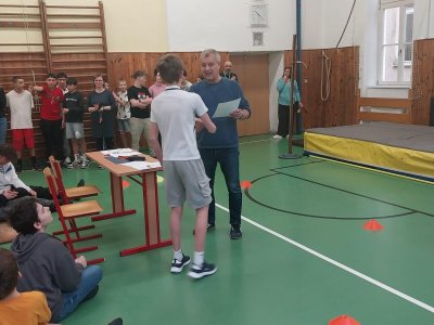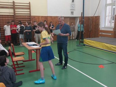 Každý týden sportujeme v hodinách tělocviku, kromě toho se ale účastníme i celoškolních soutěží, ve kterých poměřujeme síly se spolužáky z ostatních tříd. Několikrát se nám podařilo se umístit na vítězných pozicích. Největšími sporťáky jsou Jíťa a Davča Z., kterým se povedlo vybojovat první místo v kategorii mladších žáků za běh po schodech a také za skok vysoký.
