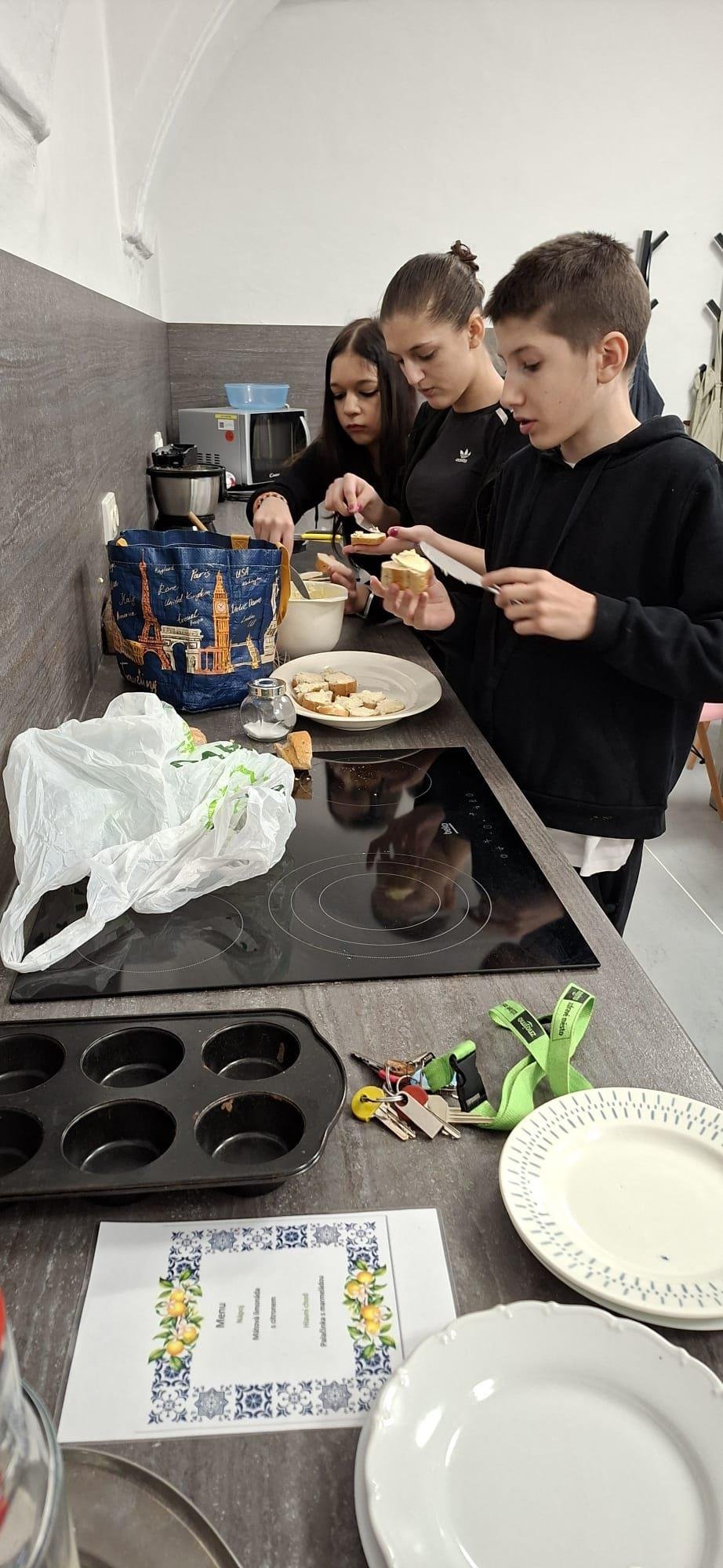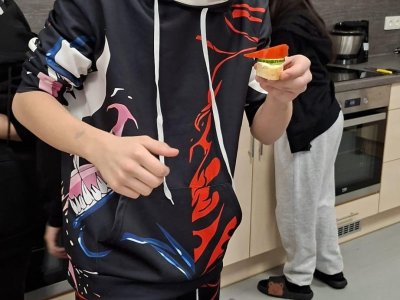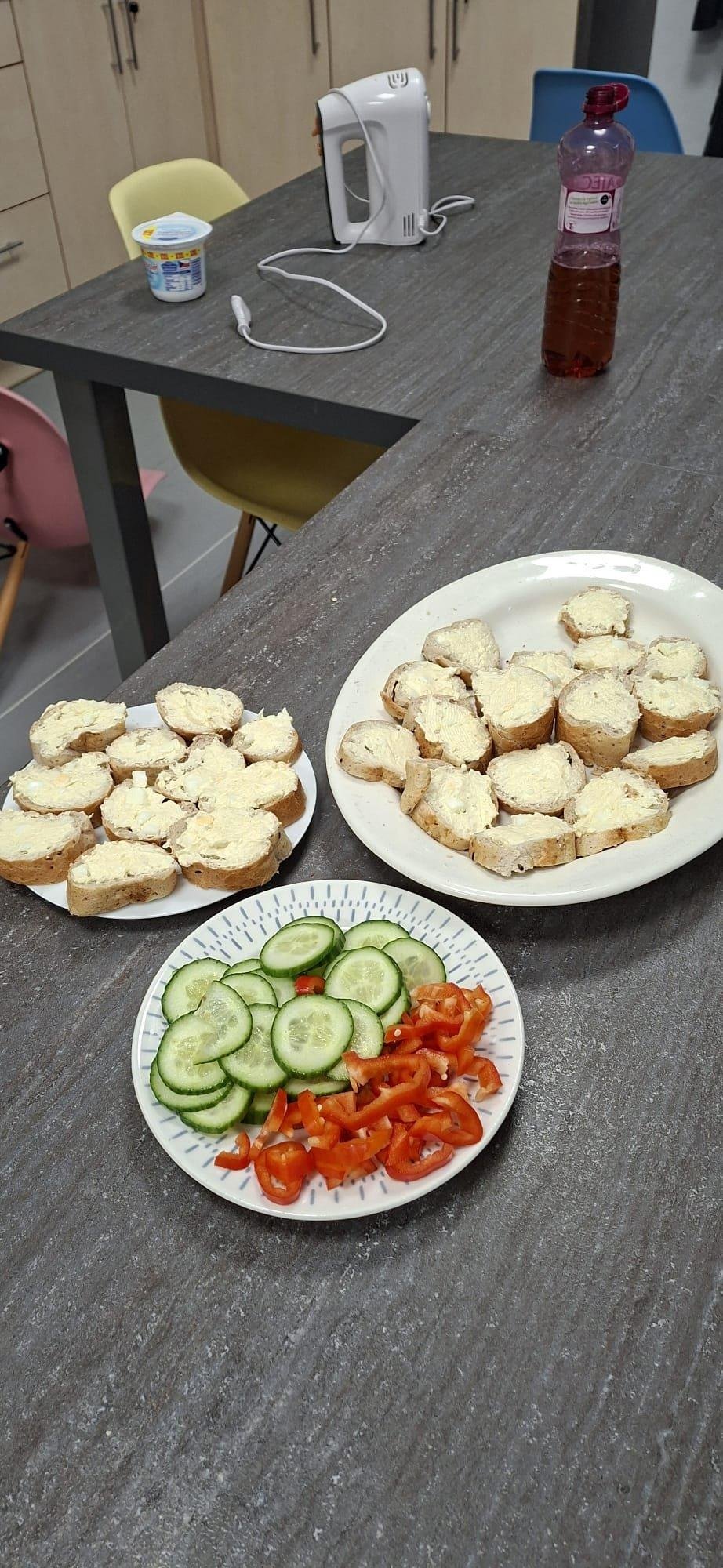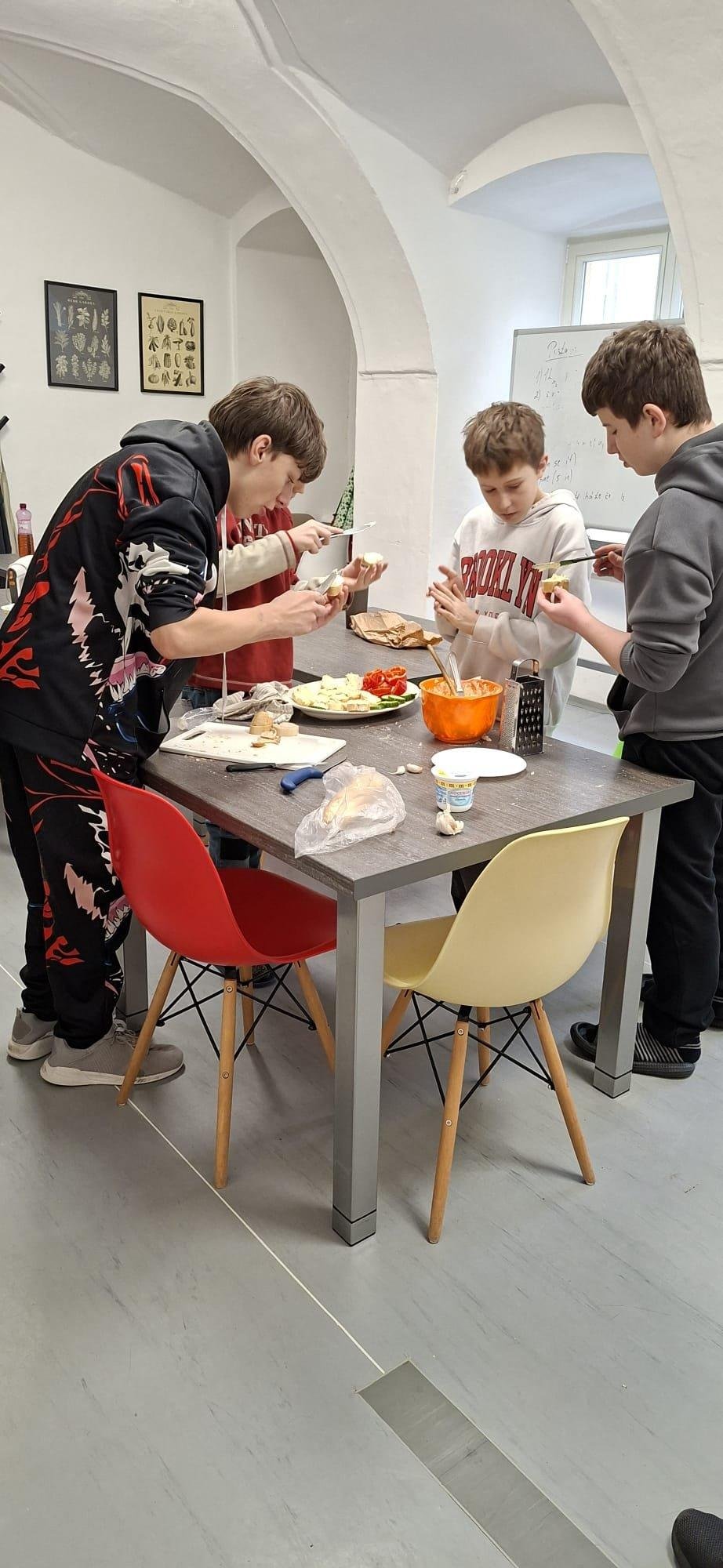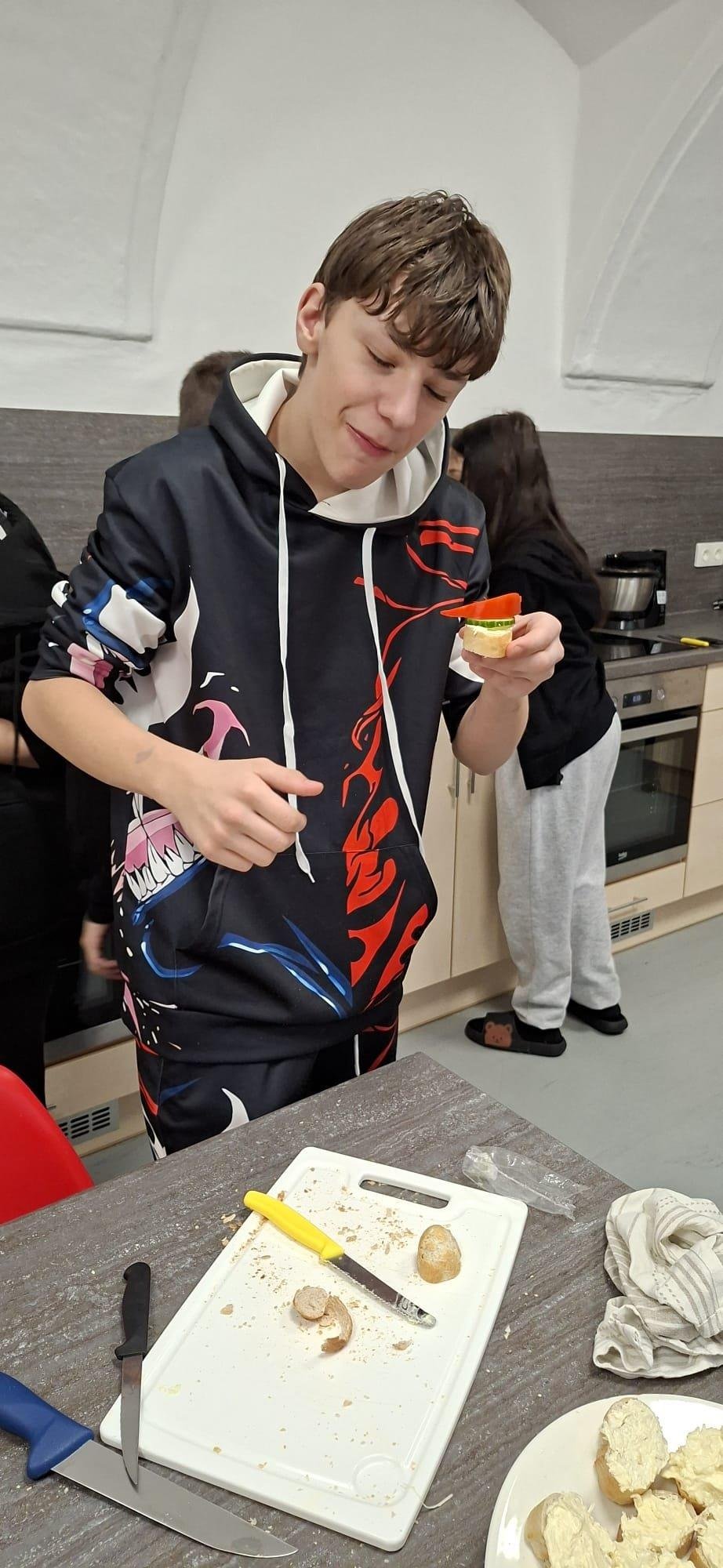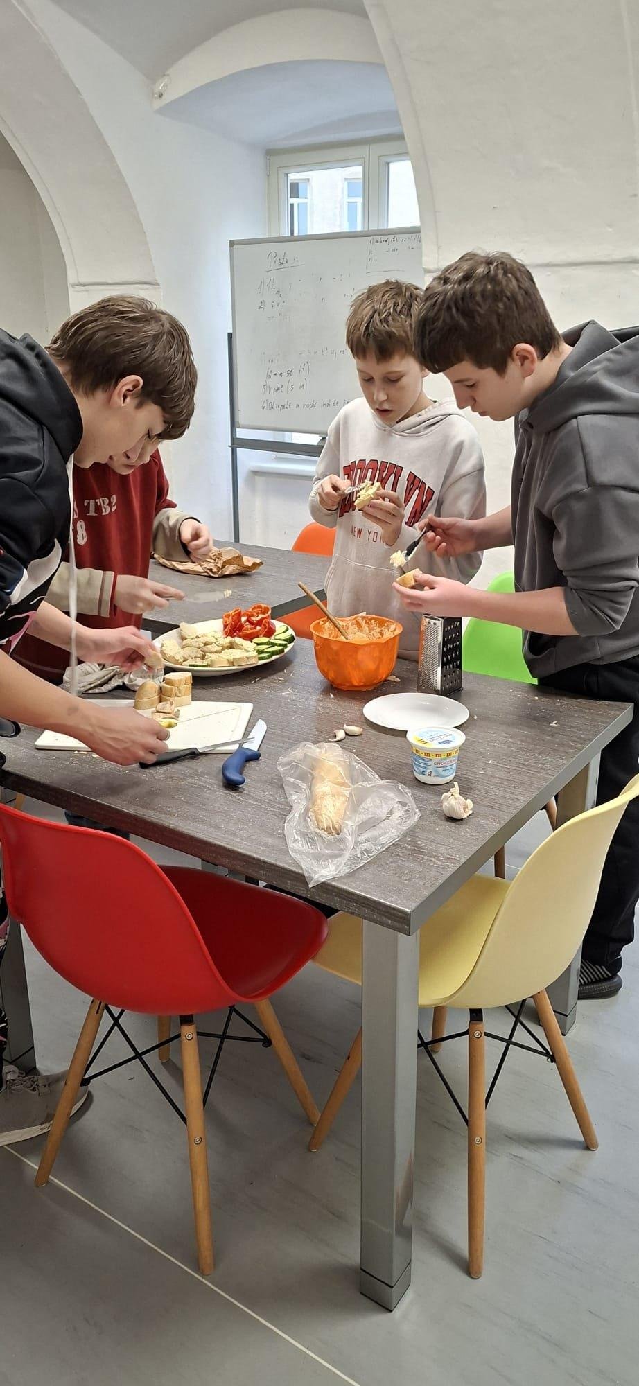V hodině pracovních činností si žáci vyzkoušeli přípravu česnekové a vaječné pomazánky. Sami si připravili suroviny, pomazánky společně vyrobili, ochutnali, namazali na rohlíky a kreativně si je nazdobili. Nechyběla spolupráce, radost z práce ani dobrá nálada, která celou aktivitu provázela.