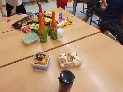 Kromě sportovních aktivit jsme si užili také malou třídní besídku. Každý z nás koupil drobný dáreček pro svého spolužáka. Milé překvapení si pro nás připravila také paní učitelka a paní asistentka. Nechybělo ani cukroví a různé dobroty, připili jsme si dětským šampaňským a společně jsme si zahráli hry. Celý den jsme si moc užili, panovala příjemná a přátelská atmosféra a už teď se těšíme na další společná dobrodružství, která nás v novém roce čekají.