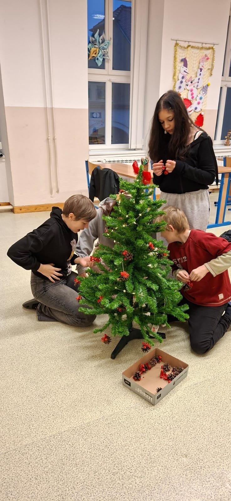 Prosinec byl u nás ve třídě opravdu pestrý a plný vánoční atmosféry. Nejprve jsme se zapojili do akce vyhlášené školním parlamentem – soutěže o nejlépe adventně vyzdobenou třídu. Dekorace jsme si vyráběli společně a během třídnické hodiny jsme si ozdobili i vánoční stromeček.
