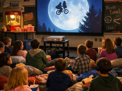 V den rozdávání vysvědčení v naší škole proběhl filmový den. Celkem se ve čtyřech místnostech promítaly čtyři snímky.