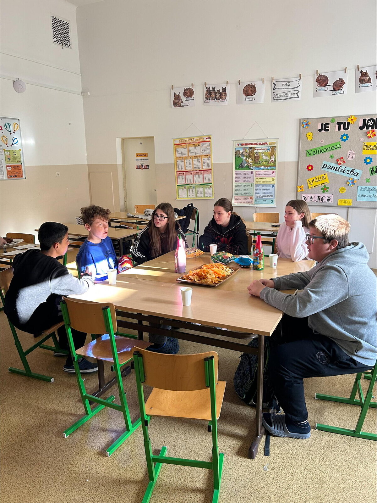Dnešní hodina se nesla v pohodové a trochu slavnostní atmosféře. Povídali jsme si a k tomu jsme si „procvičili mozkové závity“ u matematických hádanek a kvízů, které nás občas pěkně potrápily, ale o to víc nás bavily.