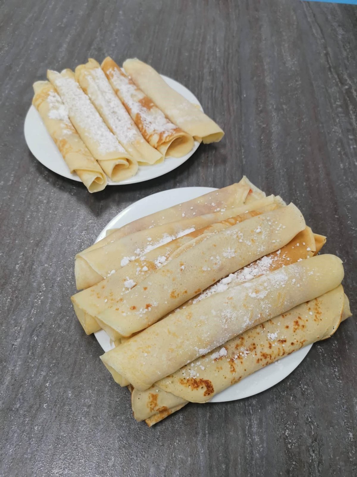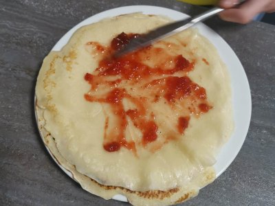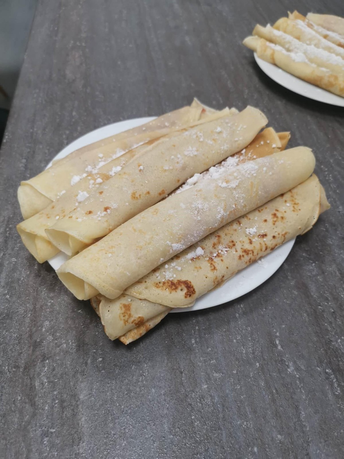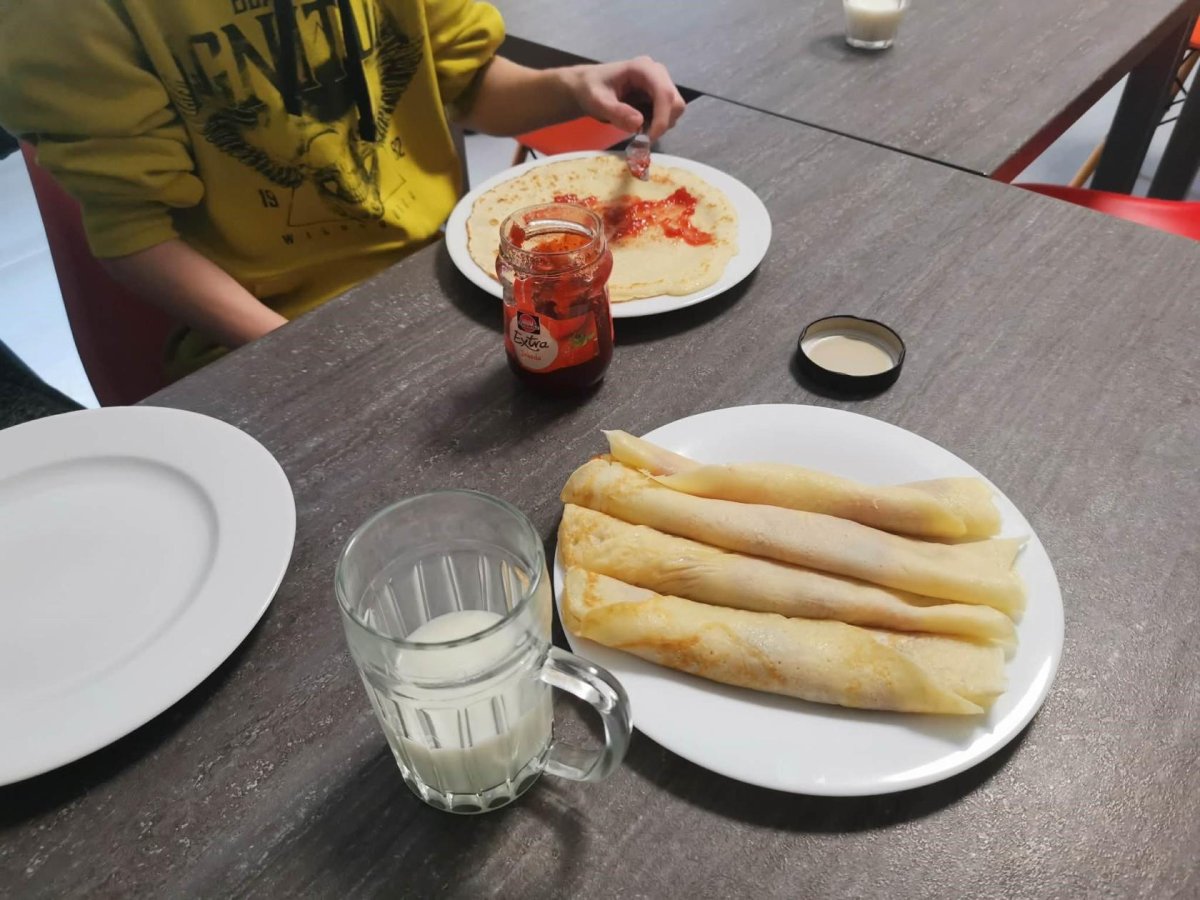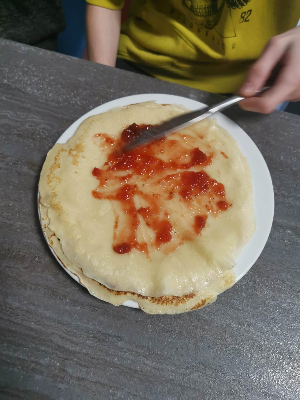 Pustili jsme se tedy do našich oblíbených palačinek plněných džemem s lehkým cukrovým popraškem. Měl nám připomínat, že venku to i nadále není nic moc.