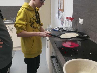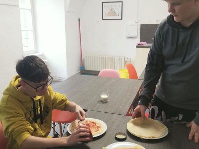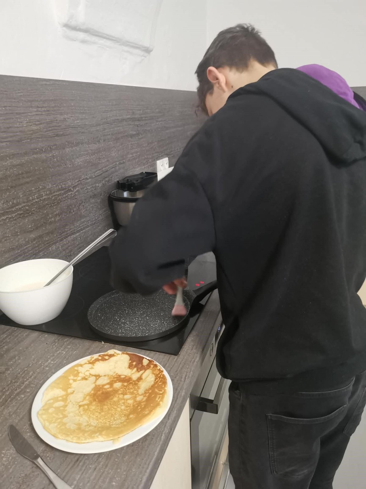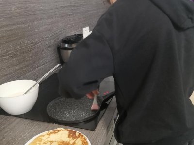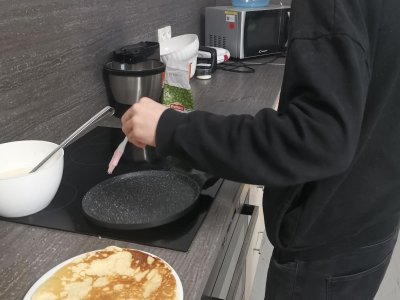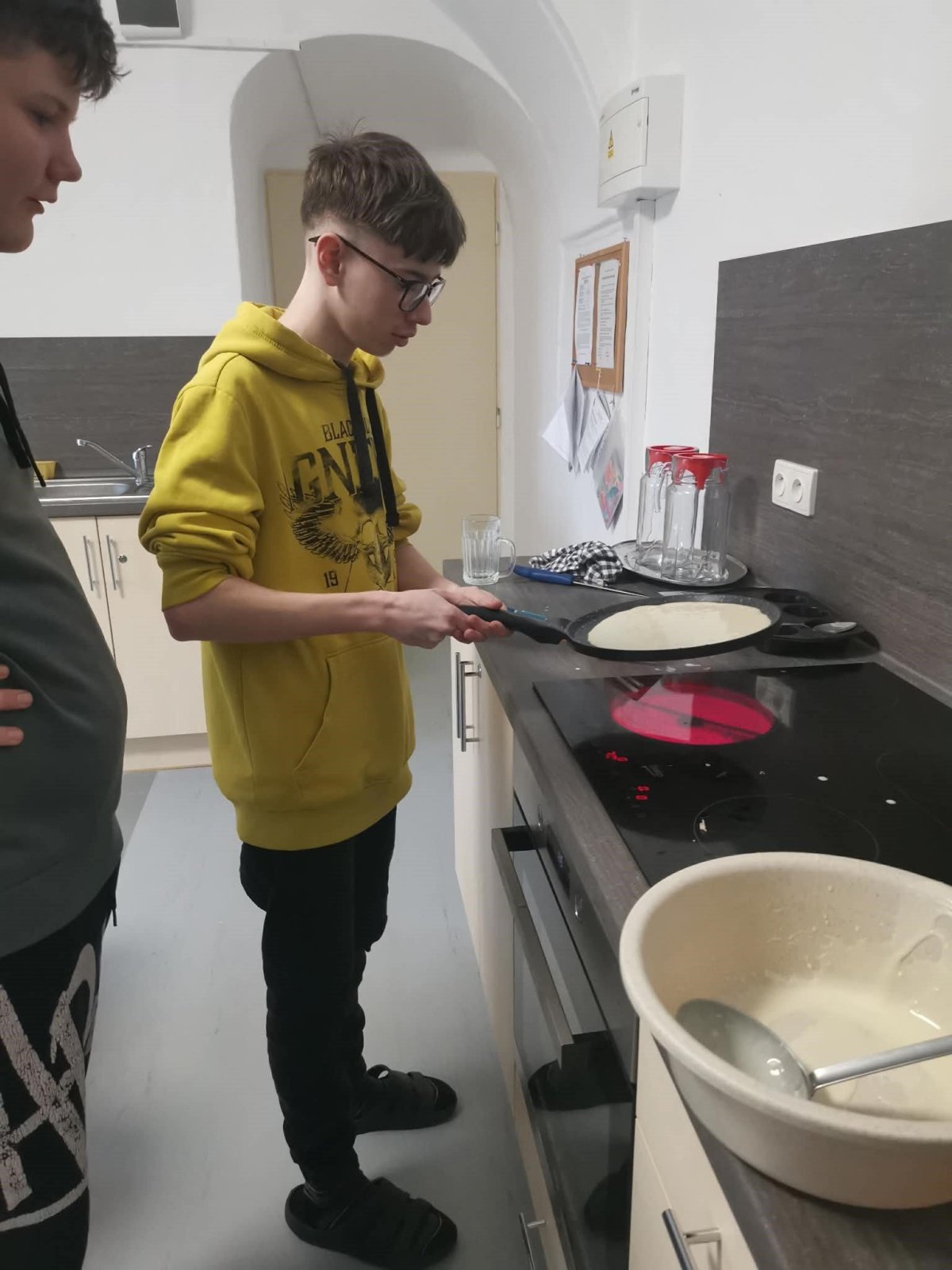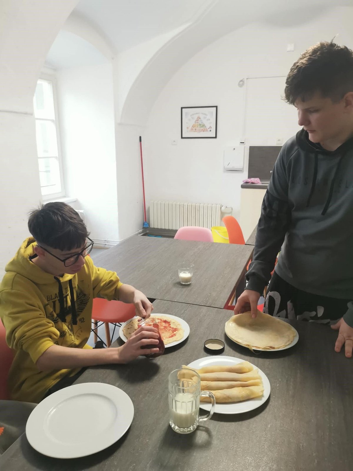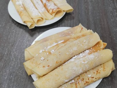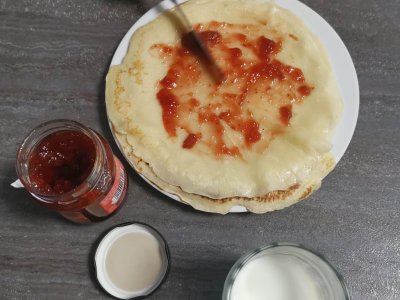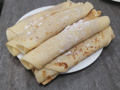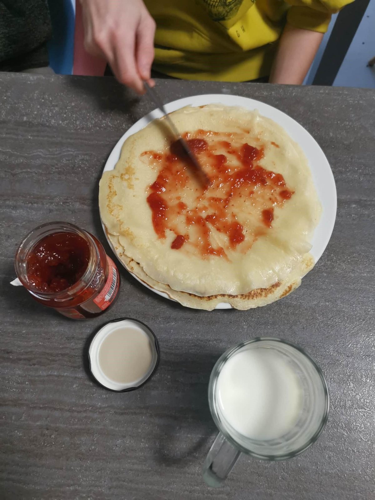 Pustili jsme se tedy do našich oblíbených palačinek plněných džemem s lehkým cukrovým popraškem. Měl nám připomínat, že venku to i nadále není nic moc.