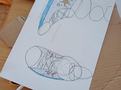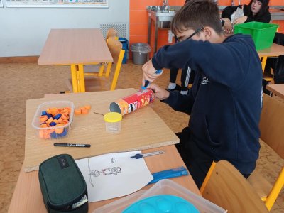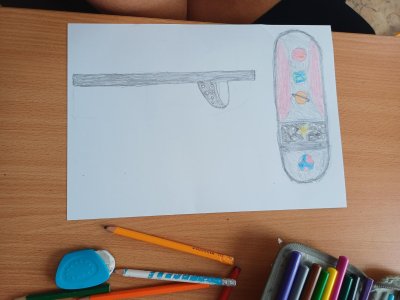 V předmětu Design a konstruování jsme rozděleni do dvou skupin, které se střídají po čtrnácti dnech. Každá z nich se pustila do jiného úkolu – jedna navrhuje vesmírnou obuv, druhá předměty denní potřeby ve vesmíru.