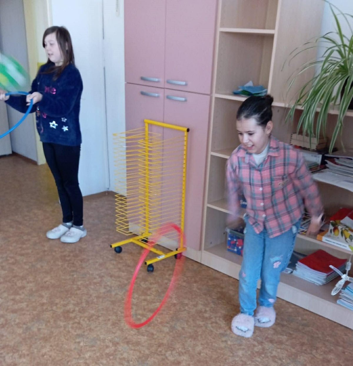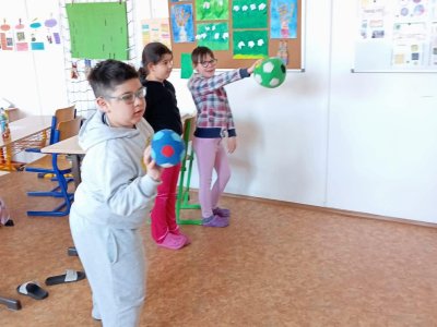 My už jsme začali! První disciplíny jsou hod na koš, chůze po schodech a chůze pozadu.