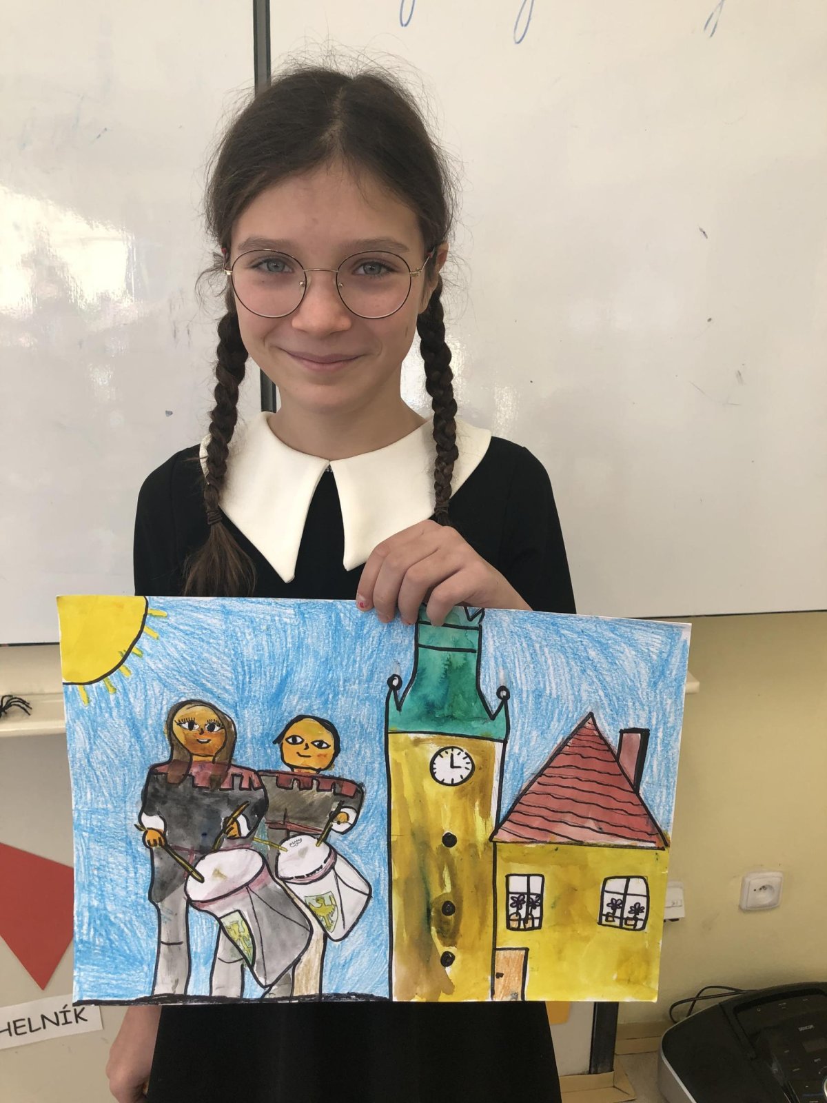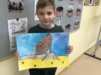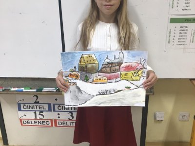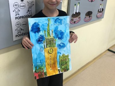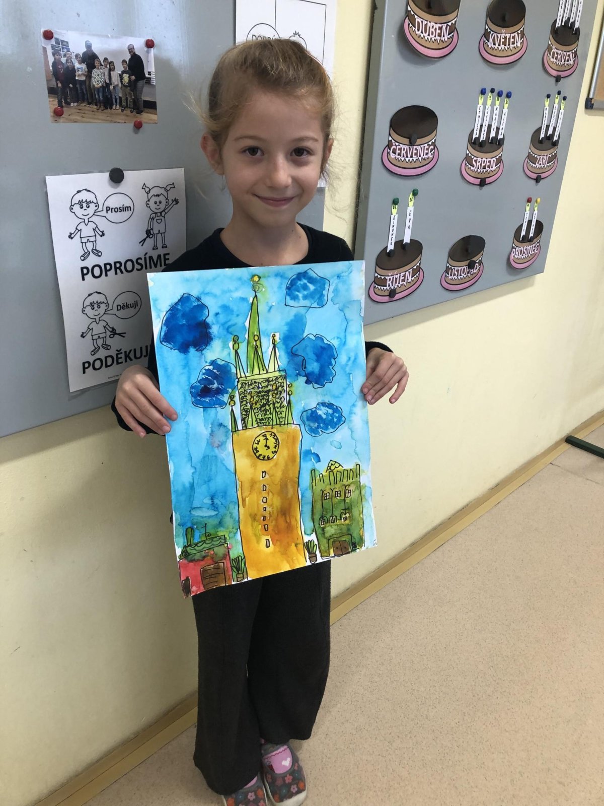 Rádi výtvarně tvoříme na daná témata. Ztvárnit podobu našeho města jsme ve výuce výtvarné výchovy zvládli na jedničku a některé velice podařené výtvory byly odeslány do soutěže, kterou organizuje město Znojmo. To slaví příští rok už 800 let a my zaznamenali současnou podobu našeho města s bohatou minulostí.