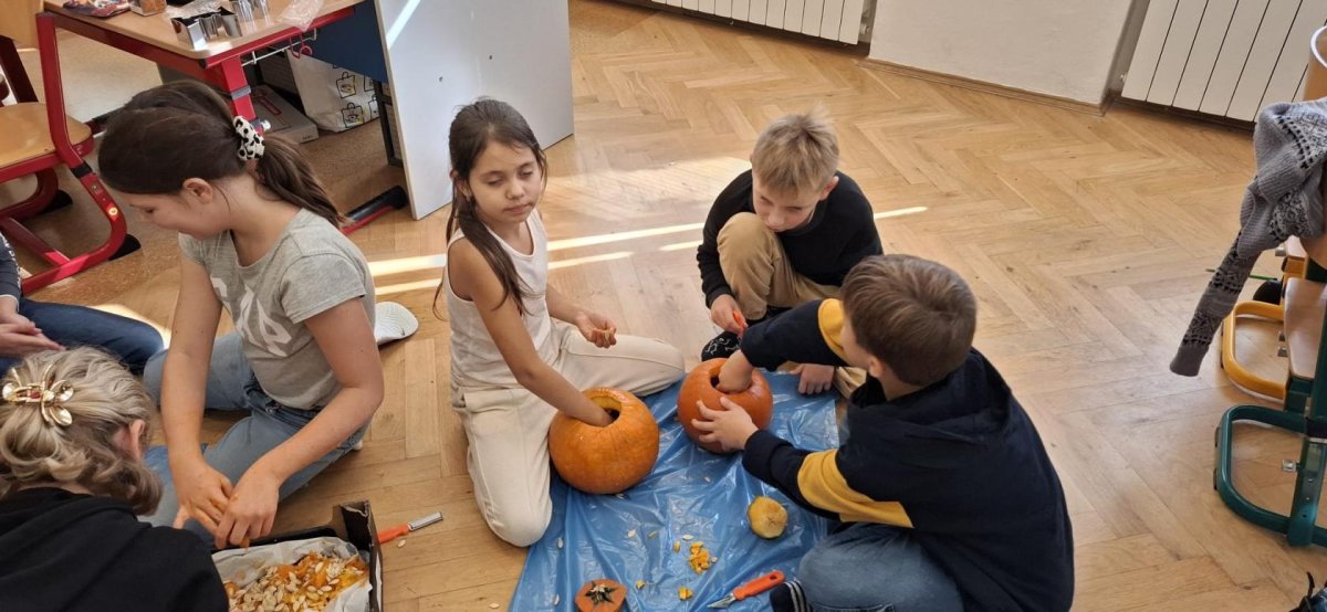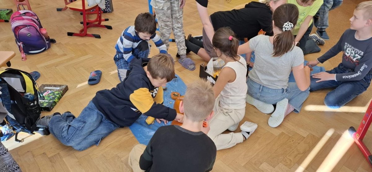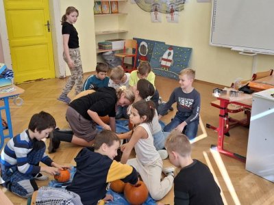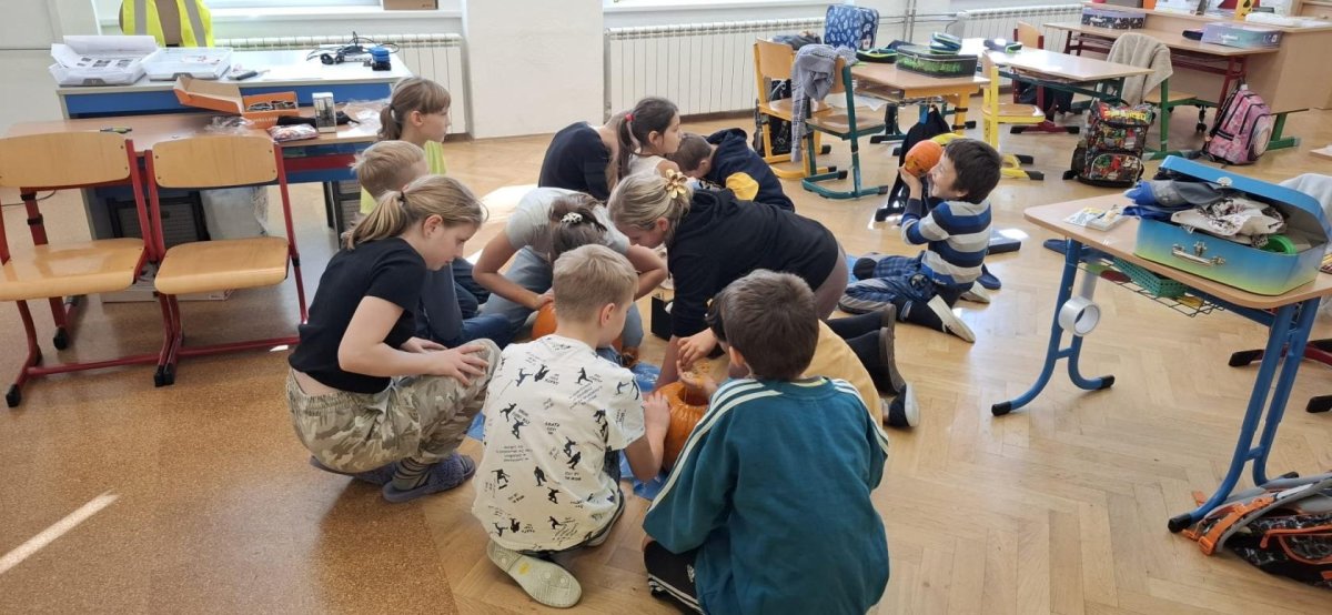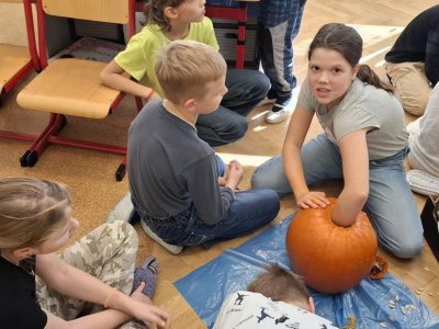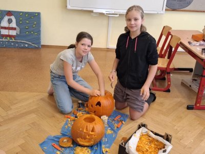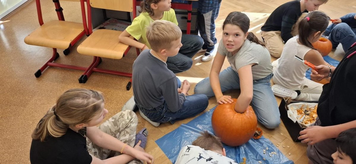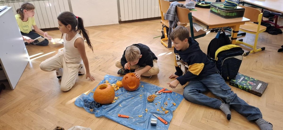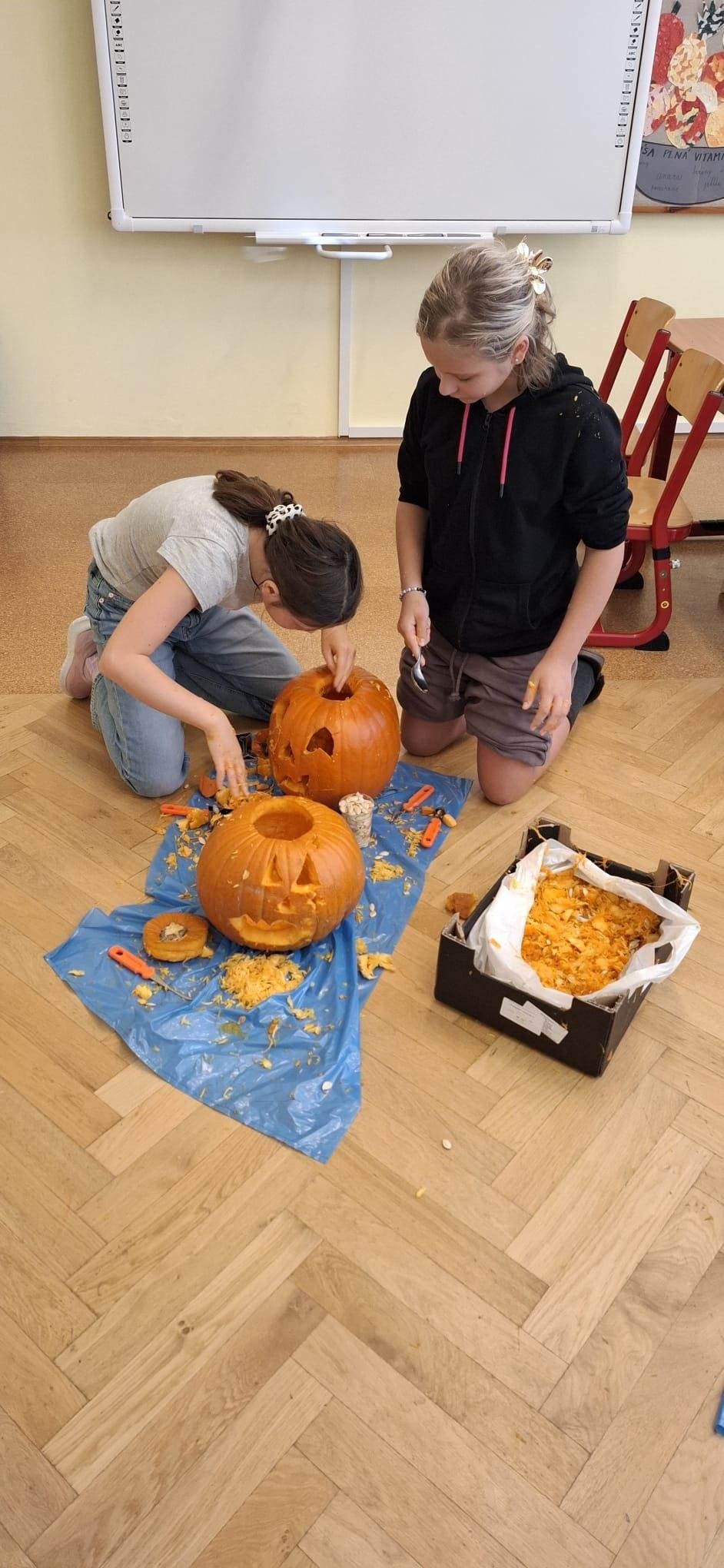 Na páteční výuku výtvarné výchovy se celá třída velmi těšila. A proč? Protože jsme se věnovali přípravě oslavy Halloweenu, která bude následovat příští týden v pátek, 31. 10. 2025. A co všechno jsme zvládli? Tak nejvíce se děti těšily na dlabání dýní, které jsme si předem opatřili. Vůbec to nebyla jednoduchá práce. Děti pracovaly s různými vykrajovátky, malými pilkami, noži a dalšími pomůckami. Fantazii se meze nekladou. Celou dobu jsem dohlížela na bezpečnost, aby se někdo nezranil.