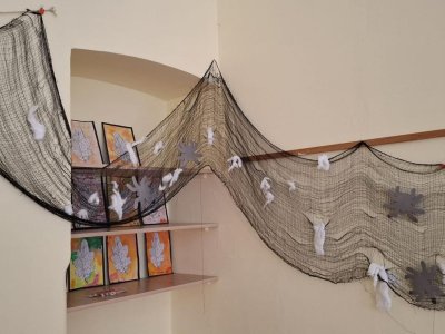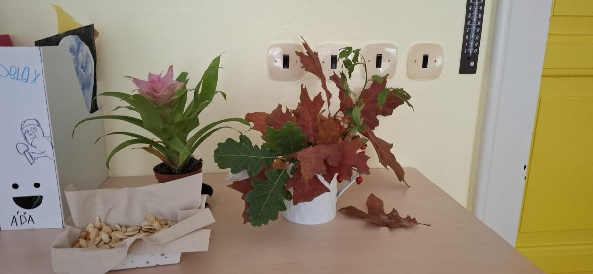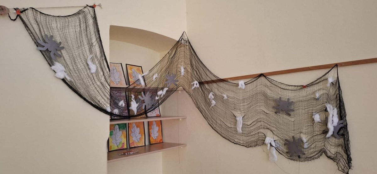 Ale závěr byl skvělý a dílo se nám velmi podařilo. Dýně jsme přenesli na dvůr školy, aby nám v teple třídy, a to po dobu podzimních prázdnin, nedošly k úhoně. Dále jsme pověsili nějaké pavučiny, přidělali pavoučky a v rámci výzdoby třídy doplnili další dekorace.